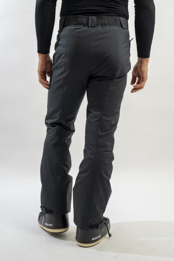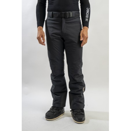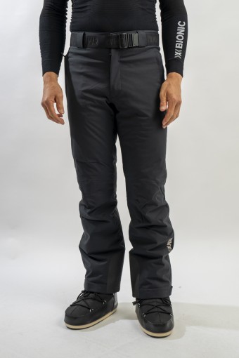 Ski pants made of 100% recycled material, stretch and soft. The internal membrane ensures waterproofing and breathability. Padded with warm technical wadding, they are insulating and breathable. Practical and functional, they are equipped with two large vertical pockets closed by zip on the sides. Elasticated waistband to best adapt to any body type, and the elastic waistband perfects the fit. At the bottom, the cut-resistant coating and gaiter provide additional protection.