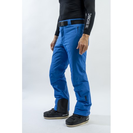 Ski pants made of 100% recycled material, stretch and soft. The internal membrane ensures waterproofing and breathability. Padded with warm technical wadding, they are insulating and breathable. Practical and functional, they are equipped with two large vertical pockets closed by zip on the sides. Elasticated waistband to best adapt to any body type, and the elastic waistband perfects the fit. At the bottom, the cut-resistant coating and gaiter provide additional protection.