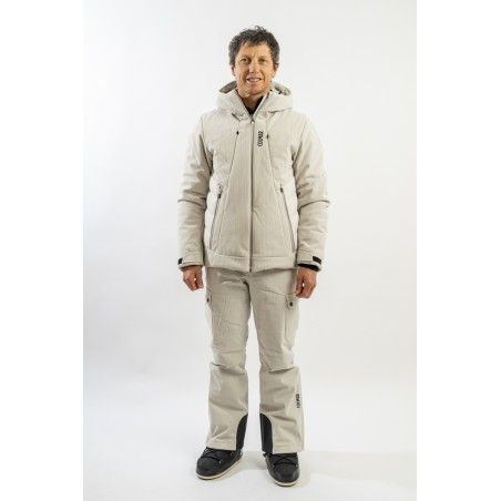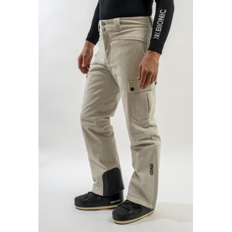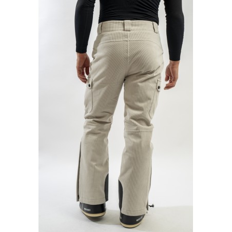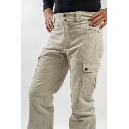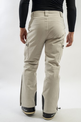 Ski pants made with comfortable ribbed stretch fabric with velvet effect. Characterized by a comfortable fit and large patch pockets on the thighs. Complete with membrane, it is waterproof and breathable. Padded with technical wadding, it is warm and insulating. At the waist there are belt loops, guaranteeing a perfect fit. Pratico is equipped with two other pockets closed by zip on the top. Ideal for tackling any adventure on the snow in style.