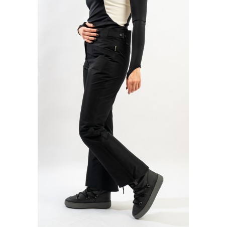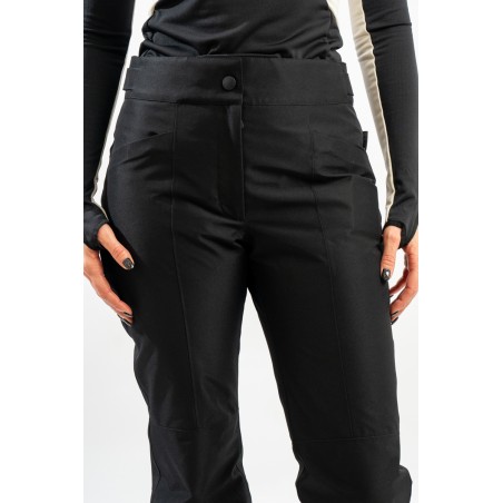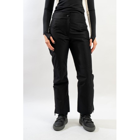Ski pants from the Grenoble High Performance line made of stretch GORE-TEX, windproof and waterproof. The soft wadding padding guarantees excellent warmth and breathability. High waist adjustable with side buttons, lined in soft fleece at the back. Zip and snap button closure. Equipped with the Recco system and every anti-snow option, it is the perfect ally for days on the snow in all conditions.