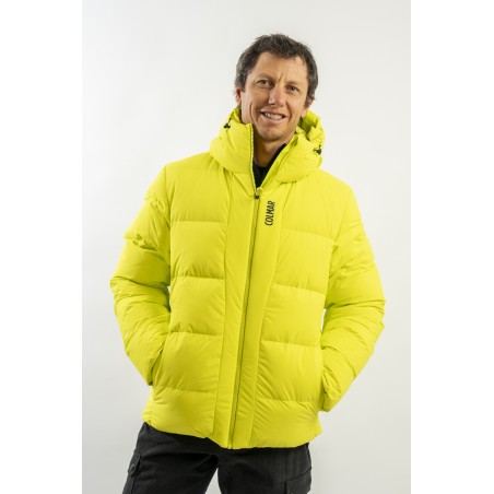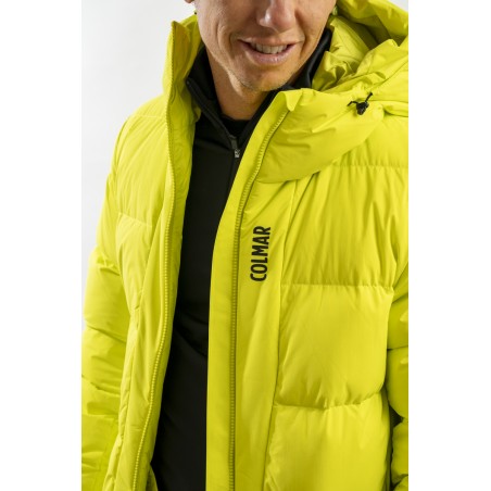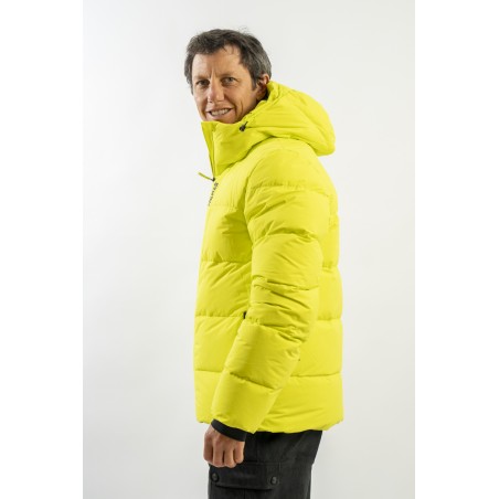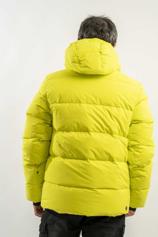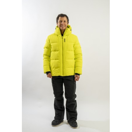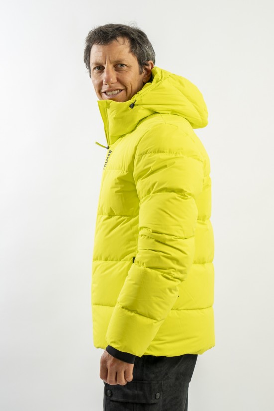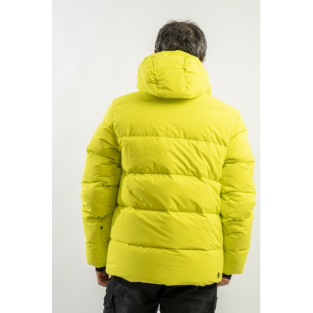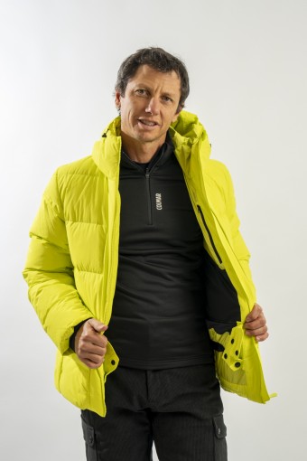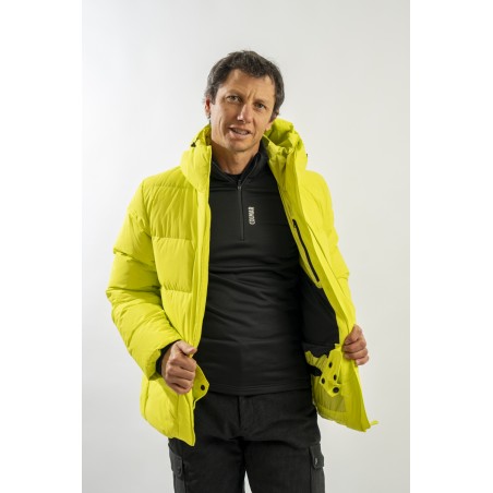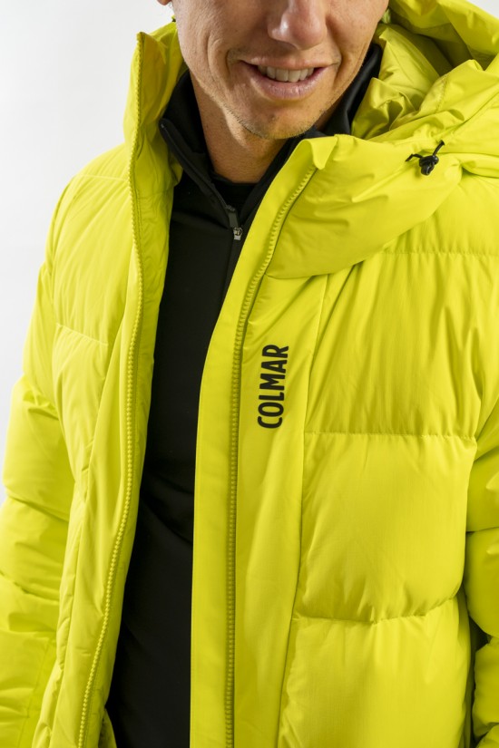 Ski down jacket made of nylon with mini ripstop with water-repellent treatment, for a garment that remains light and at the same time more resistant. Greater protection is also given by the wrap-around and padded hood. Padded with soft goose down, it is warm and insulating. Complete with internal membrane, it is waterproof and breathable. Functional and practical, it is equipped with multiple pockets and every snowproof option, ideal in the mountains in all conditions.