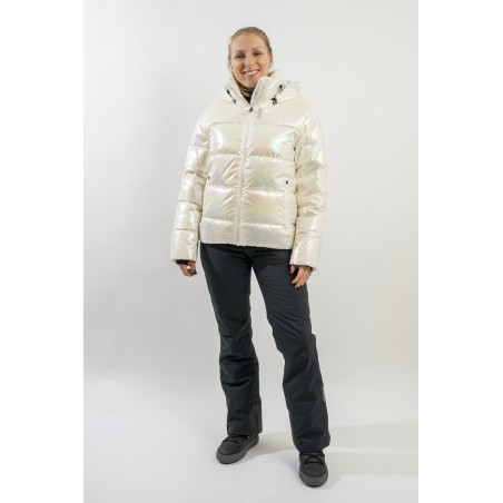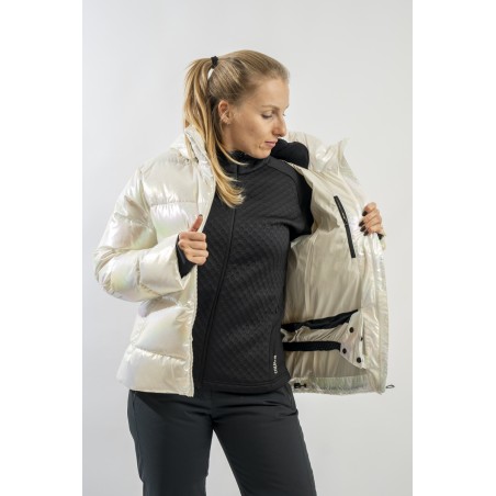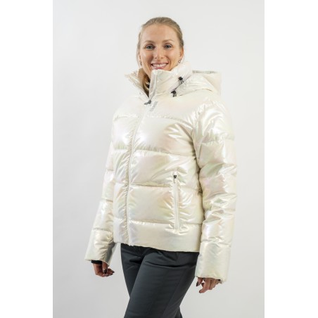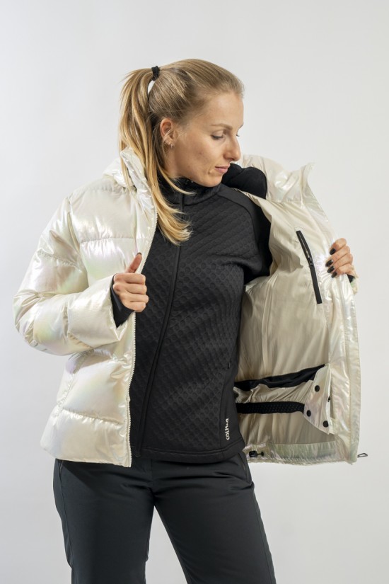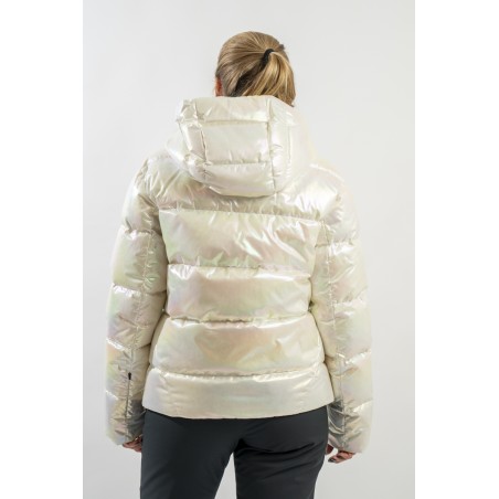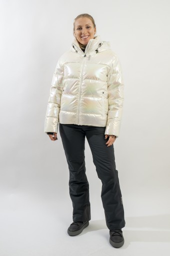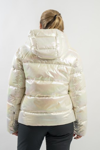 Warm and enveloping, this ski jacket by COLMAR is padded with soft down and is equipped with a practical detachable hood. Made of resistant bright iridescent ripstop nylon and finished with a wide boudine quilting. The soft and comfortable lines give the garment a gritty and dynamic look. Complete with internal membrane, it is waterproof and breathable. Equipped with multiple pockets and every windproof and snowproof option, it is practical and functional, the perfect garment to face a day on the snow with style in all conditions.
