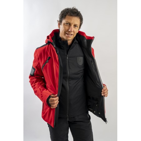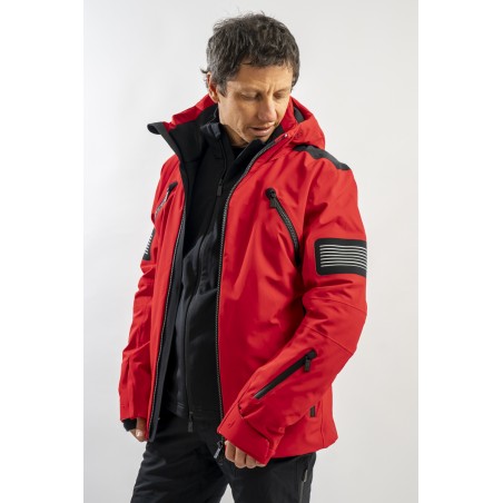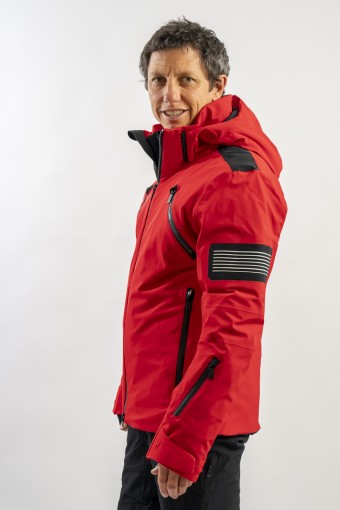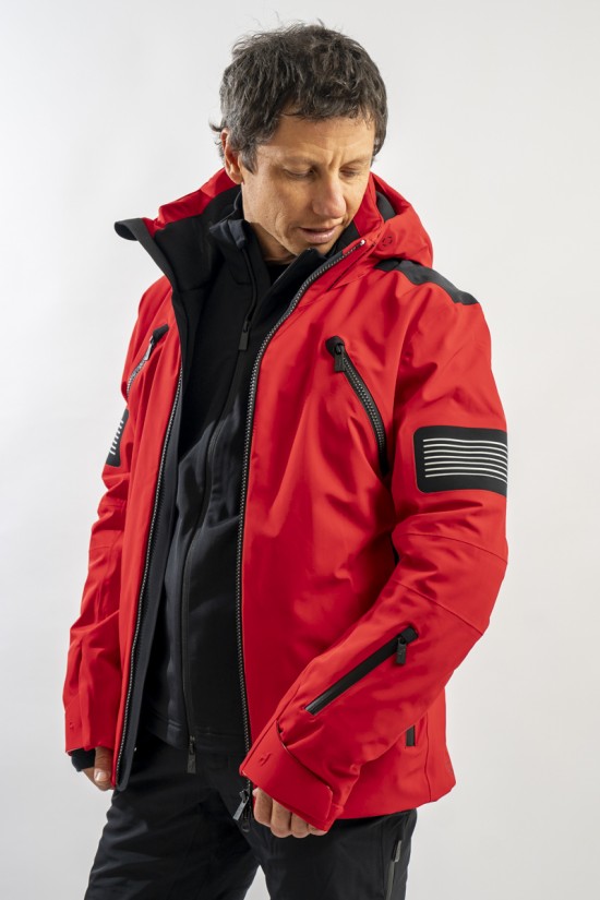 Allan is the ski jacket signed TONI SAILER made with the best materials and the most advanced technologies to obtain high performance products. Sporty and decisive look given by the YKK Vislon AquaGuard zips. Made of Premium 4way stretch fabric, it is absolutely comfortable, lightweight, highly waterproof and breathable. The detachable hood thanks to the new interlocking system and the additional ventilation zips define the character of the garment, versatile and perfectly adaptable to any condition.