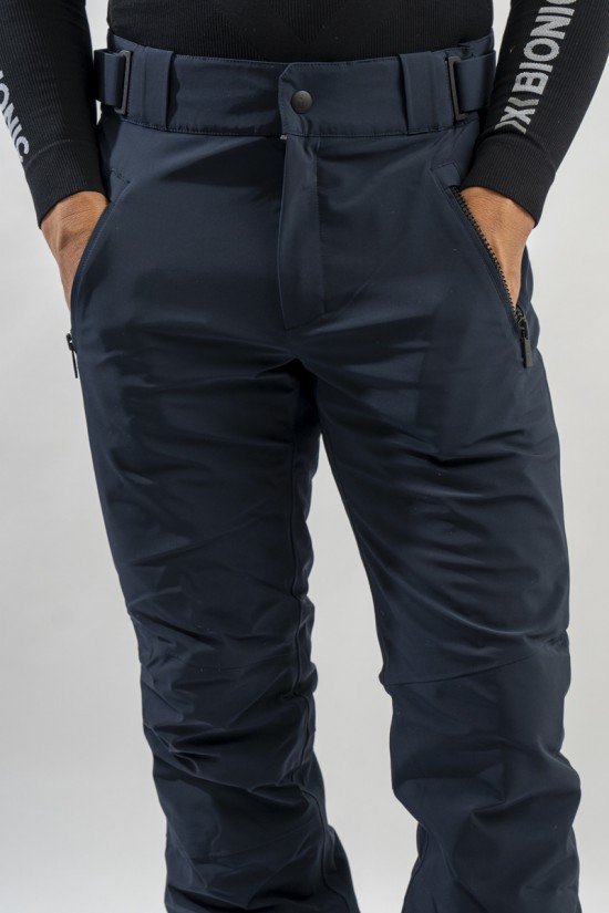 Ski pants made of Premium 4-way stretch fabric, four-way stretch guarantees comfort and maximum freedom of movement. The material combined with a 3D construction and an adjustable waist makes the garment high-performance and perfectly adaptable. Padded with technical wadding, they are warm and insulating, suitable for all conditions.