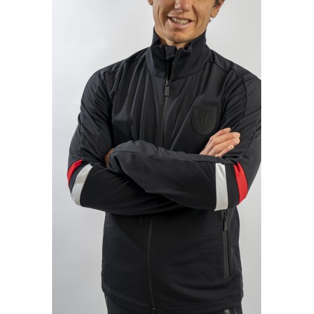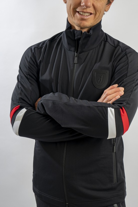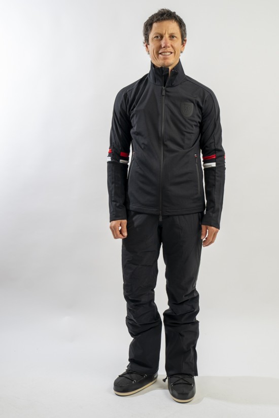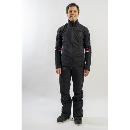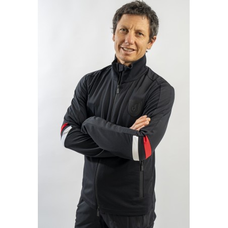 Full zip undersuit made of stretch technical fabric. Characterized by tricolor bands on the sleeves for a sporty and dynamic look. Equipped with two practical side pockets closed with zip. Highly breathable and comfortable, it is perfect under a ski jacket or on its own for outdoor sports
