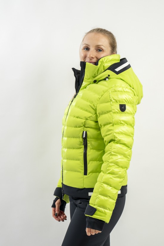 Norma is the result of the meeting of two fabrics that together determine the style and functionality of this ski jacket by TONI SAILER. The stretch fabric with boudine quilting offers comfort and freedom of movement, the bright ripstop nylon bands embellish it. Waterproof and breathable, it is equipped with every snowproof option. Manually padded with SORONA® Fiberballs, a technical wadding that retains heat and offers optimal insulation. The essential and feminine line enhances and enhances the shiluette. Norma meets the needs of the passionate skier and meets the demand of those who do not want to give up style and elegance on the snow.