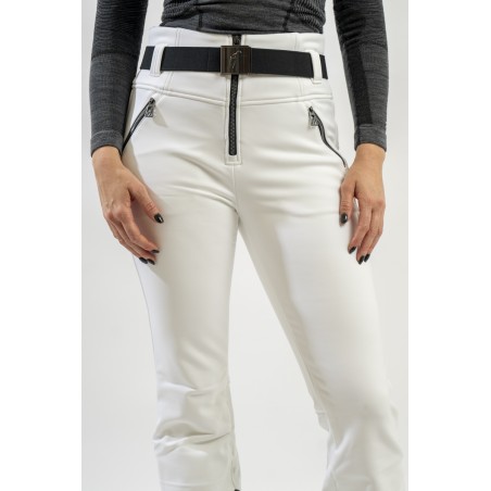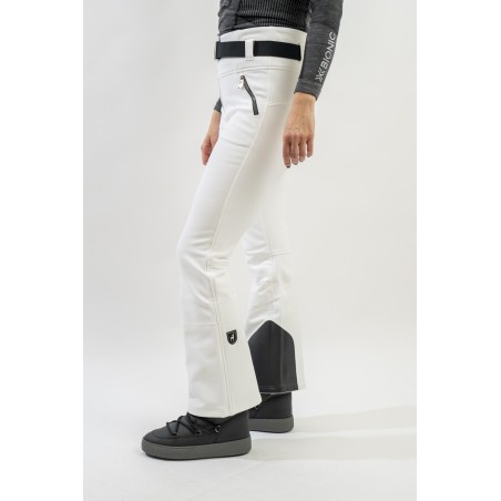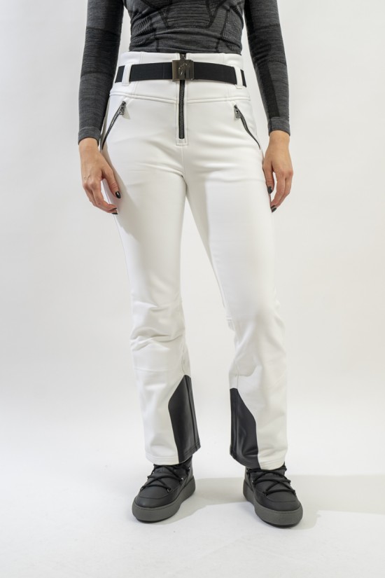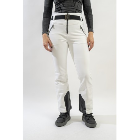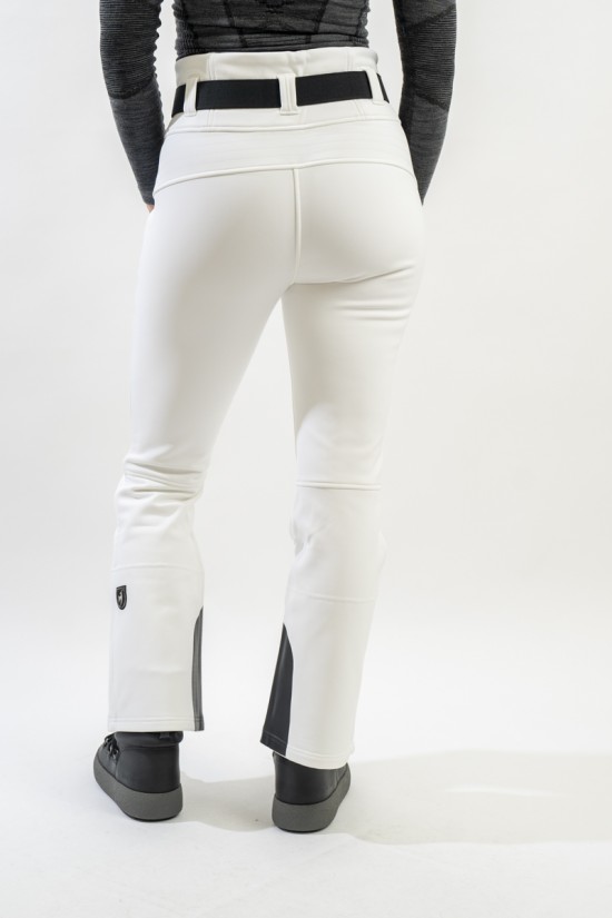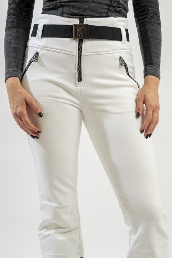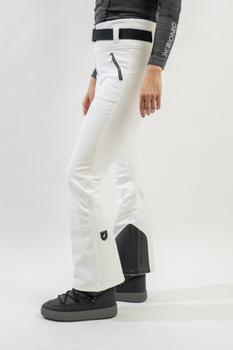 Feminine cut and functional materials characterize Olivia, the ski pants by TONI SAILER. Made of Schoeller® Comfortshell bluesign®, a stretch and comfortable fabric that is windproof and water-repellent. The interior is lined with soft fleece, guaranteeing better insulation and a greater feeling of warmth. Pre-shaped seams and waist belt allow for better adaptability. The essential design and the particular fabric adapt perfectly to the figure, enhancing it. Equipped with a snow gaiter at the bottom, it is ideal for all outdoor activities.