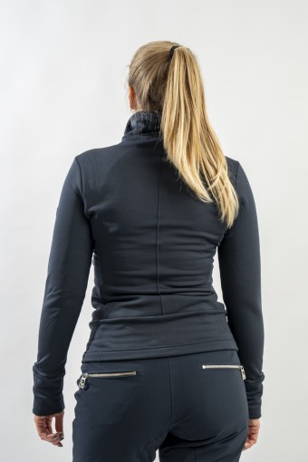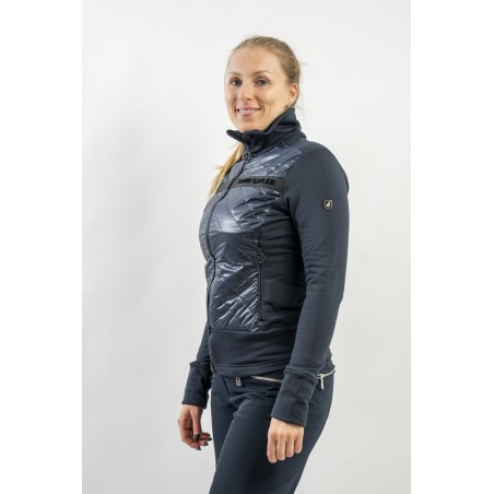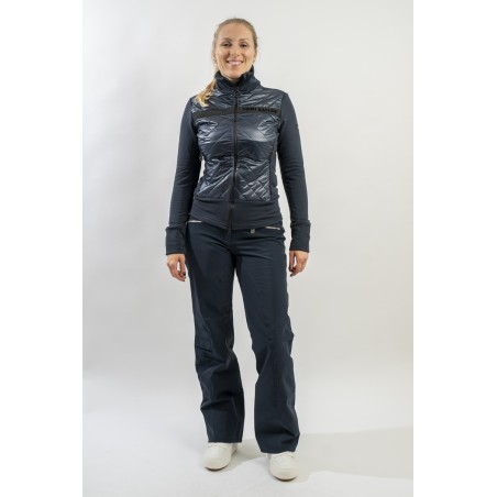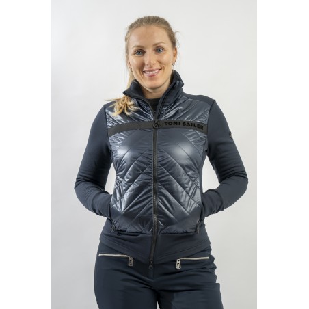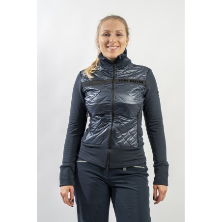 Full-zip undersuit made of bi-material to make the garment functional and practical on any occasion. The stretch fabric is combined with shiny ripstop nylon padded with warm technical wadding on the front. The graphic quilting with the creation of TONI SAILER 3D lettering on the chest give it character and particularity. Comfortable and breathable, it is ideal worn alone or as an additional insulating layer.