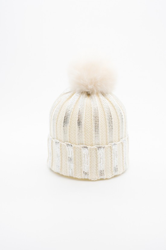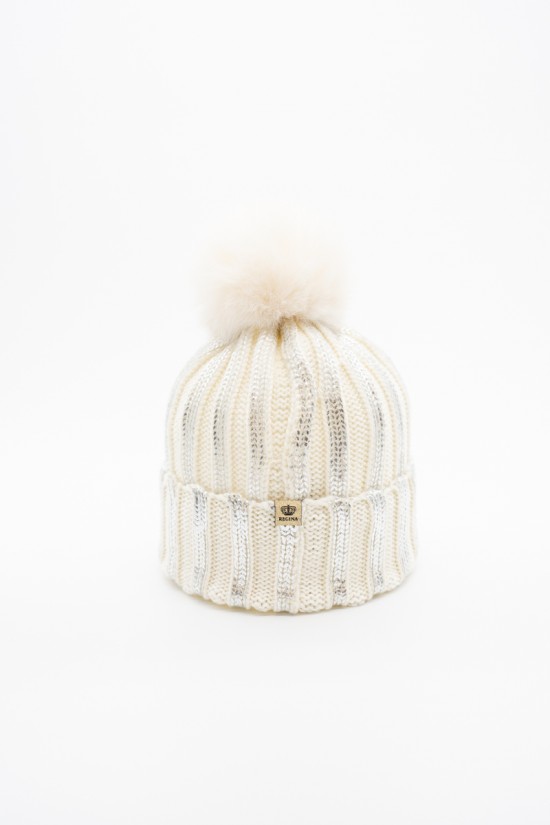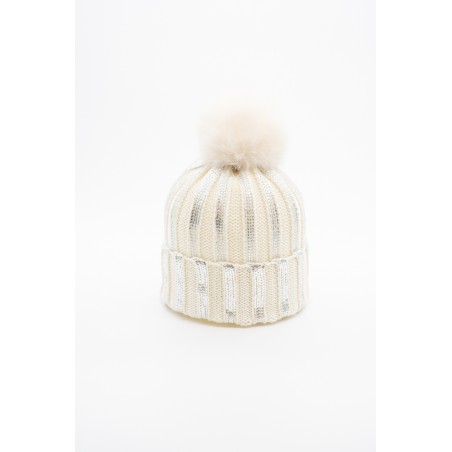 Beanie REGINA made of 100% wool with faux fur pompoms and metallic details, it is an elegant and warm accessory for winter. The soft, thick ribbed knit provides a comfortable feel and a good fit, while the cuff adds a touch of style. The elastic fit makes it suitable for different head shapes, keeping you warm and protecting you from the cold. Murmasky's fur pompom gives an additional element of refinement and originality. Perfect to complete casual outfits or for more formal occasions!