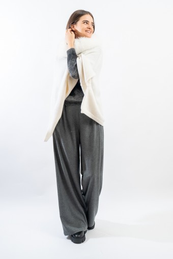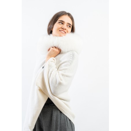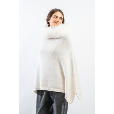 The REGINA A-line poncho is a truly sophisticated and versatile garment. Soft wool and cashmere provide comfort and warmth, while the fur collar adds a touch of luxury and elegance. This poncho is ideal for enriching your outfits with style, whether for a special occasion or for an everyday look. Don't forget to complete your outfit with matching accessories for an even more chic effect!