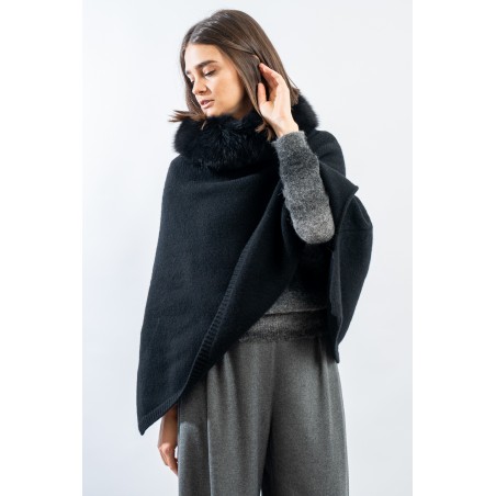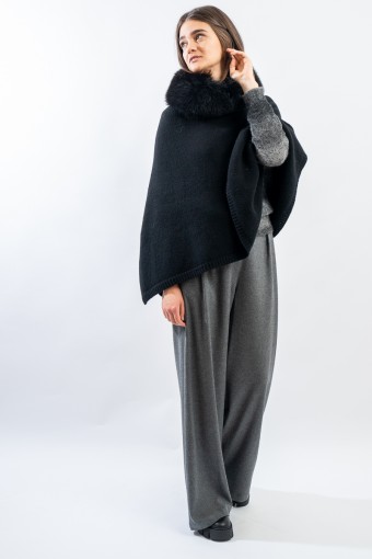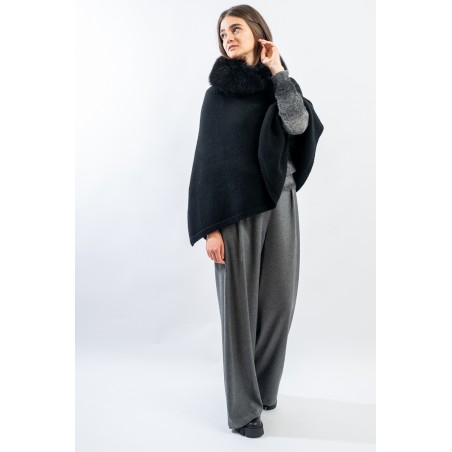 The REGINA A-line poncho is a truly sophisticated and versatile garment. Soft wool and cashmere provide comfort and warmth, while the fur collar adds a touch of luxury and elegance. This poncho is ideal for enriching your outfits with style, whether for a special occasion or for an everyday look. Don't forget to complete your outfit with matching accessories for an even more chic effect!