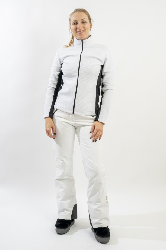 Full-zip high-neck undersuit made of stretch material. On the hips and under the arms, a soft fleece lining keeps the most exposed parts warmer. Equipped with two practical pockets closed with a zip on the sides. Compact, it does not create volume under the jacket, comfortable and breathable, it is ideal for practicing any outdoor sport.