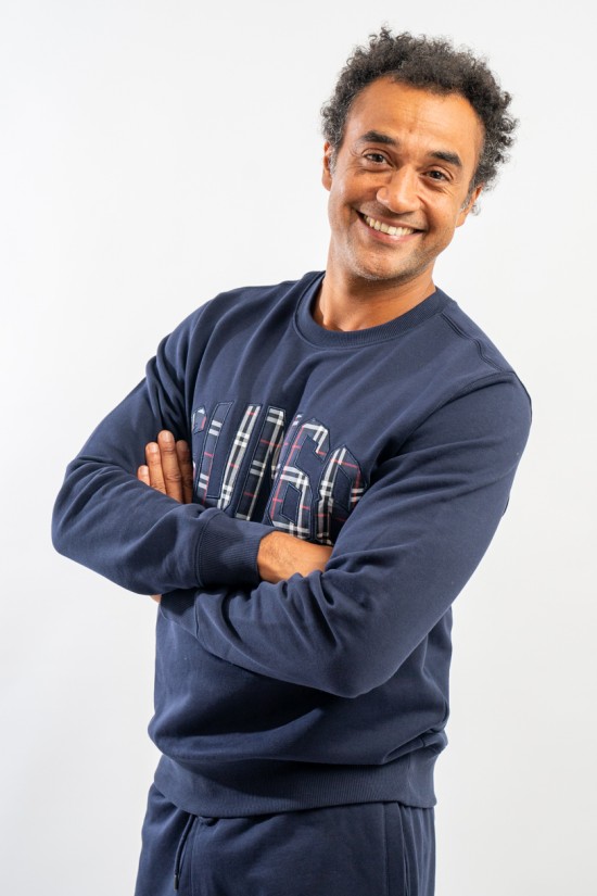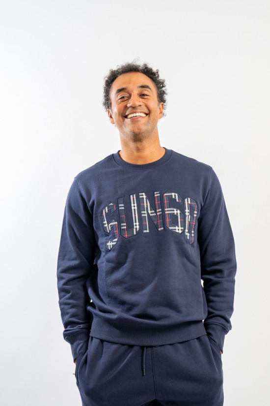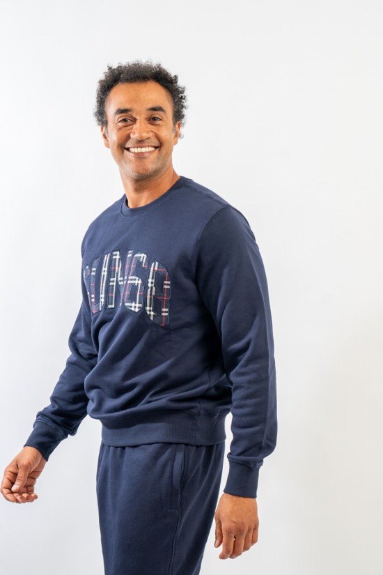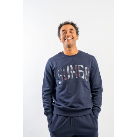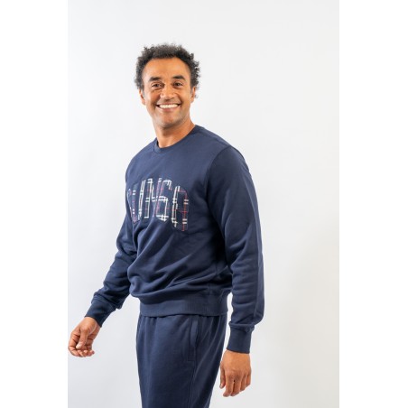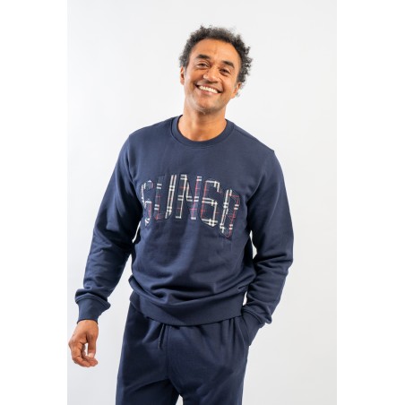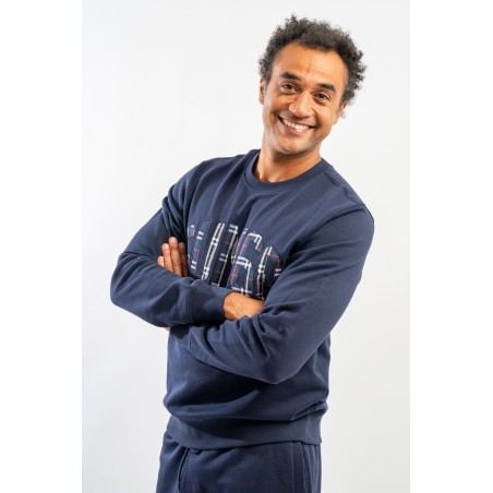 Crewneck sweatshirt made of cotton fleece. Finished with a ribbed knit on the neckline, cuffs and hem. Enriched by the maxi writing embroidered on the front with a check pattern.