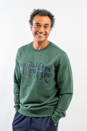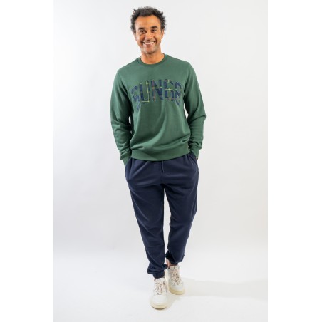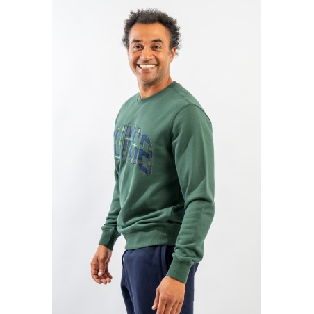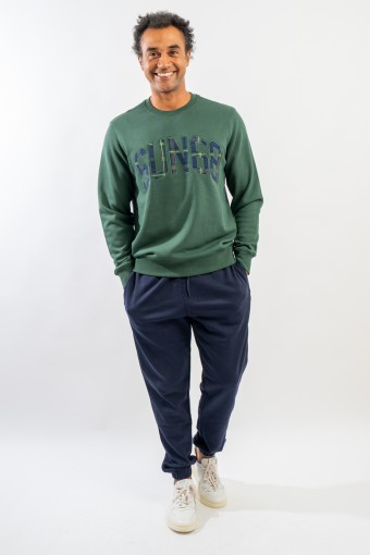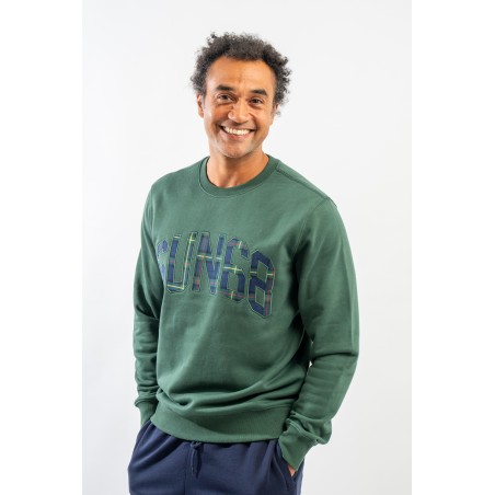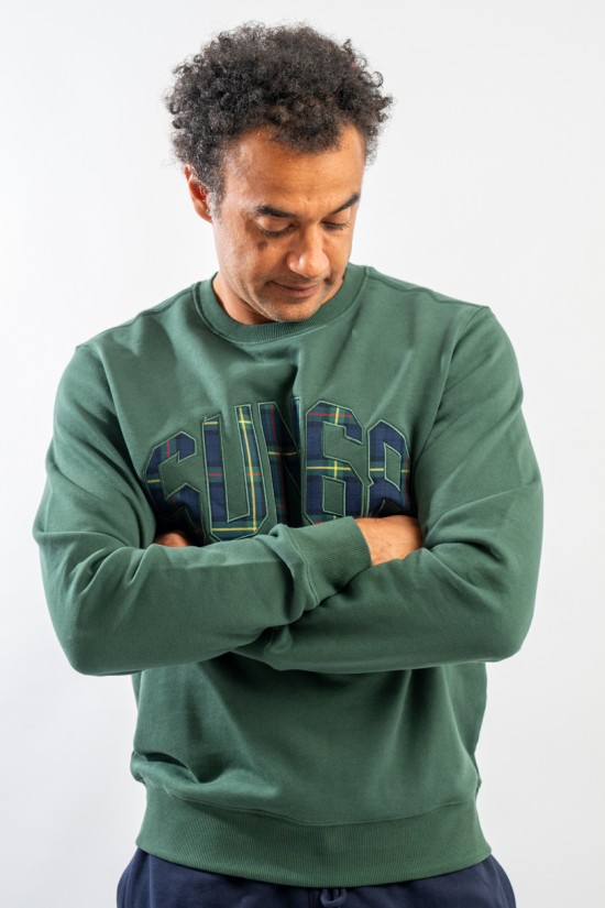 Crewneck sweatshirt made of cotton fleece. Finished with a ribbed knit on the neckline, cuffs and hem. Enriched by the maxi writing embroidered on the front with a check pattern.