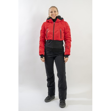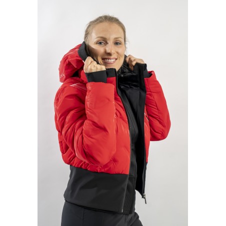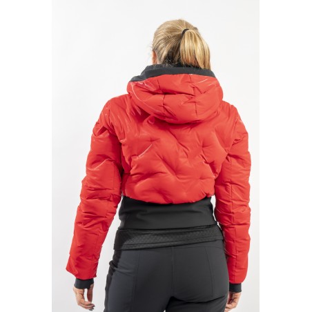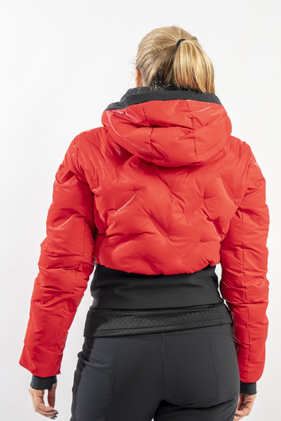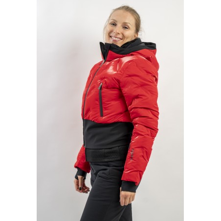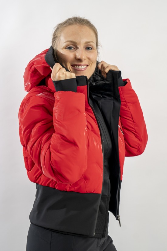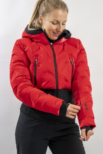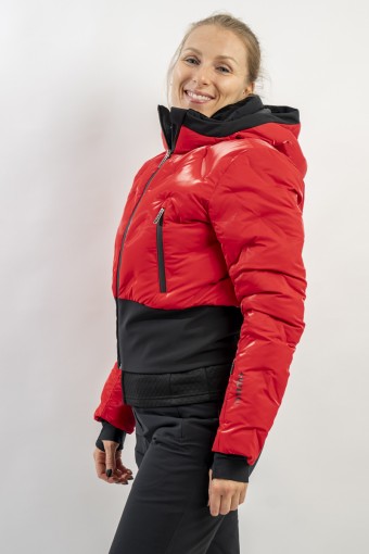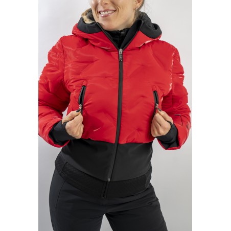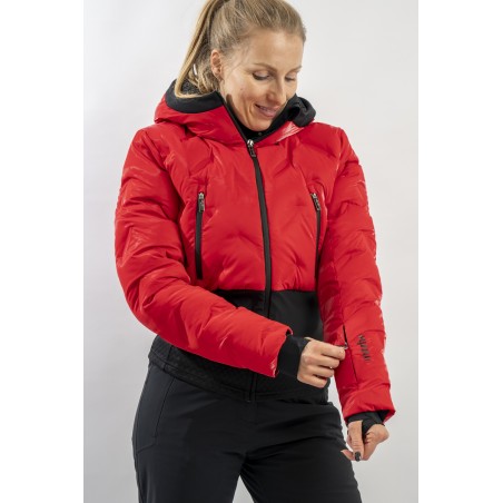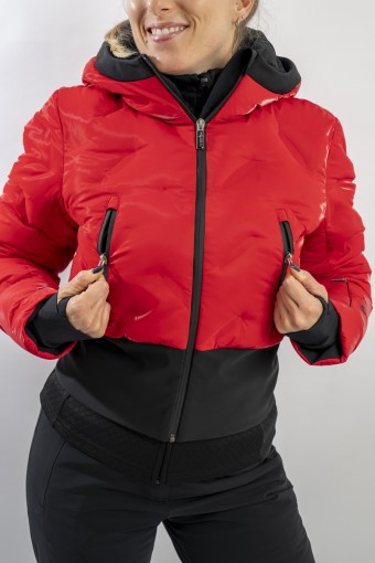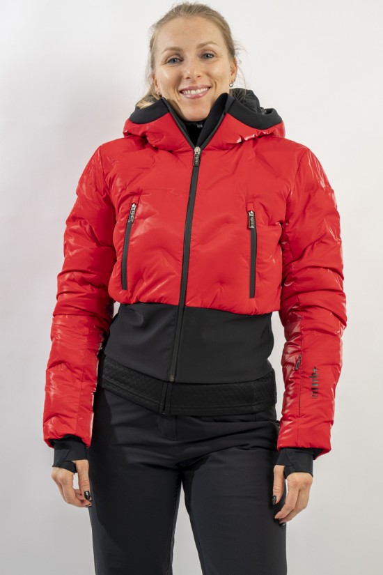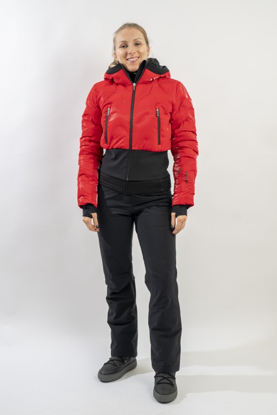 The search for functionality and style translates into Calipso, the ski jacket by ZERO RH. Featuring matt metal-effect nylon and a new seamless Zig-Zag structure that replaces classic quilting. Padding and waterproofing are thus preserved. The cropped cut is enhanced by the stretch softshell band that creates adherence ensuring comfort and additional protection in the air. Down filled, it is warm and highly insulating thanks to the internal membrane. Soft, contemporary design defined by the large pockets on the front.