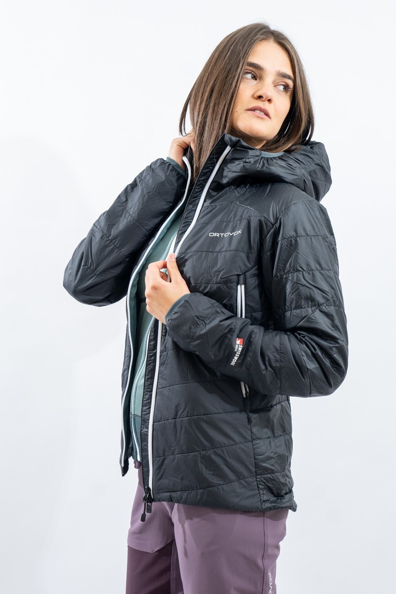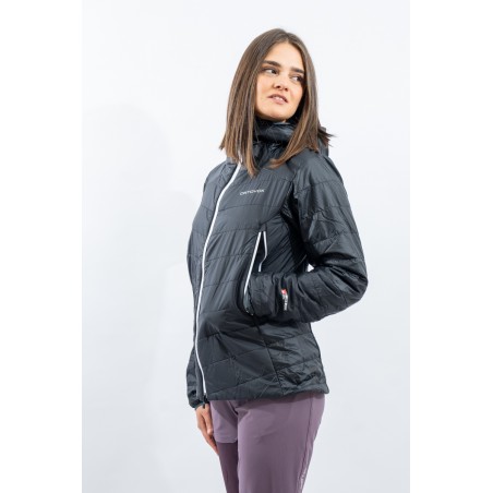 Westalpen Swisswool Jkt for women is an insulating and thermal garment thanks to the padding in Swiss wool, whose fiber in addition to being robust has excellent thermal properties and allows excellent moisture regulation. The outer fabric is made of Pertex Quantum, water-repellent, windproof and abrasion-resistant. ORTOVOX WOOL PROMISE.