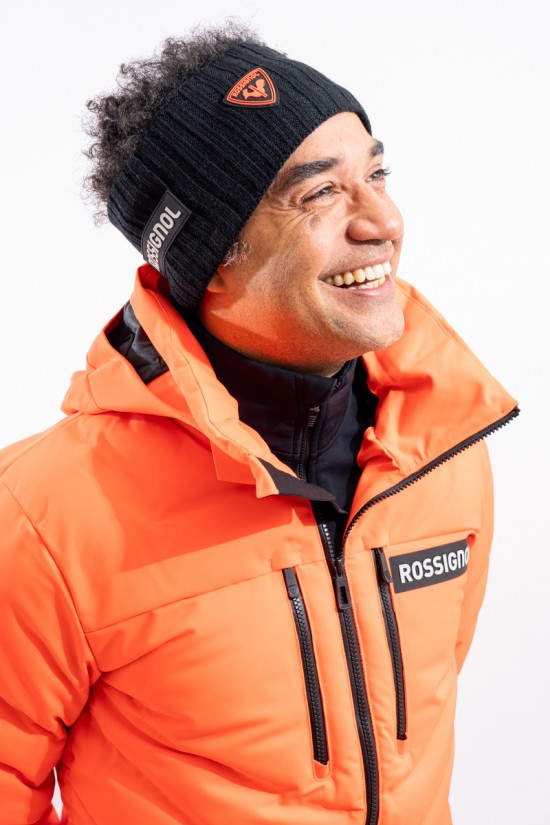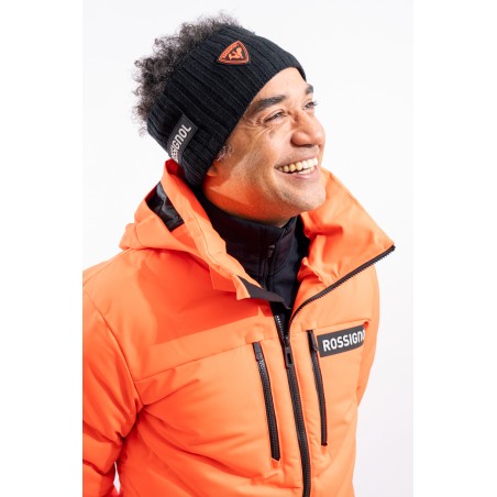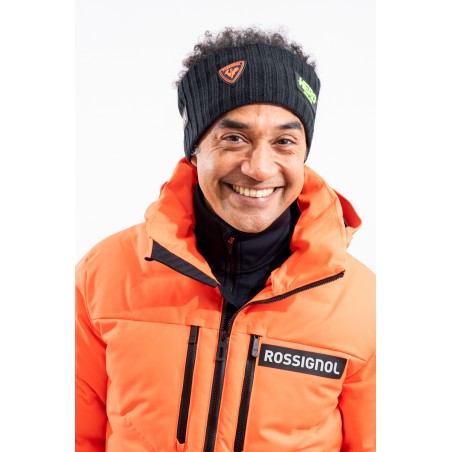 Headband made of warm and stretch fabric. Lined with soft fleece on the inside and knitted with wide ribs. Rubberized institutional patches applied on the front and sides.