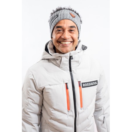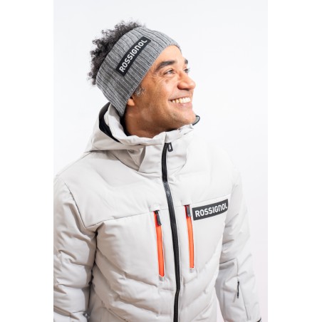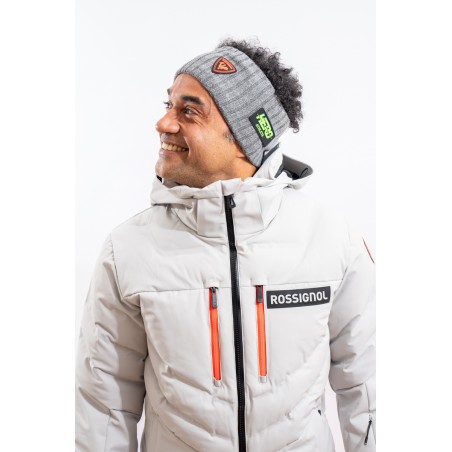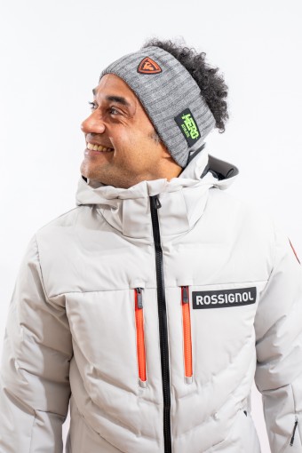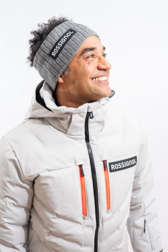 Headband made of warm and stretch fabric. Lined with soft fleece on the inside and knitted with wide ribs. Rubberized institutional patches applied on the front and sides.
