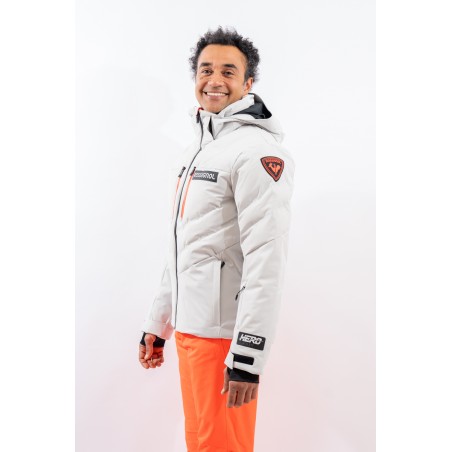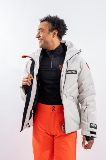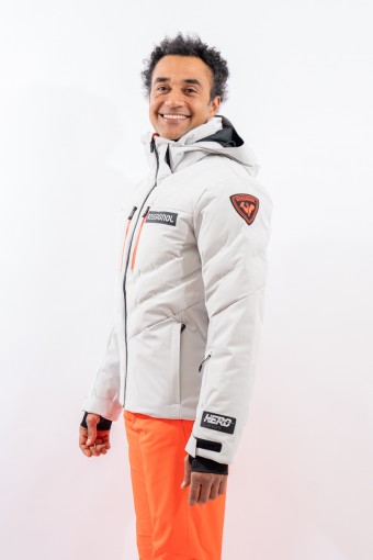 Hero Blackside ski jacket, the jacket that celebrates speed, inspiring the Hero line by ROSSIGNOL. The fully heat-taped outer fabric combined with the inner membrane guarantees high standards of waterproofing and breathability. The multidirectional stretch of the fabric ensures comfort and maximizes freedom of movement. Padded with soft Primaloft wadding, it is warm and comfortable. The detachable hood allows it to be adapted to any condition. Linear design and bold graphics for a high-performance jacket that can satisfy even the most demanding skier.