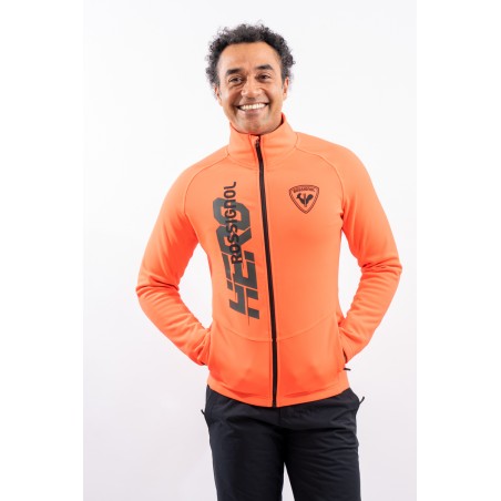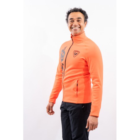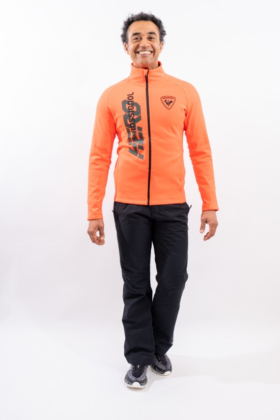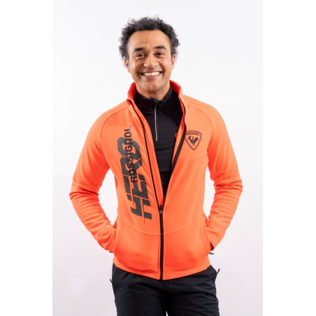 Classique Clim full-zip undersuit signed ROSSIGNOL. The stretchy fabric lined with soft fleece is comfortable and gives a pleasant feeling of warmth. Enriched by lettering prints and the rubberized logo applied on the chest. It is practical and functional, equipped with two convenient side pockets closed with zip. Ideal under the ski jacket as a mid-layer for added insulation on colder days.