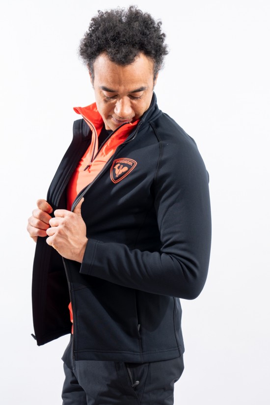 Classique Clim full-zip undersuit signed ROSSIGNOL. The stretchy fabric lined with soft fleece is comfortable and gives a pleasant feeling of warmth. Enriched by lettering prints and the rubberized logo applied on the chest. It is practical and functional, equipped with two convenient side pockets closed with zip. Ideal under the ski jacket as a mid-layer for added insulation on colder days.