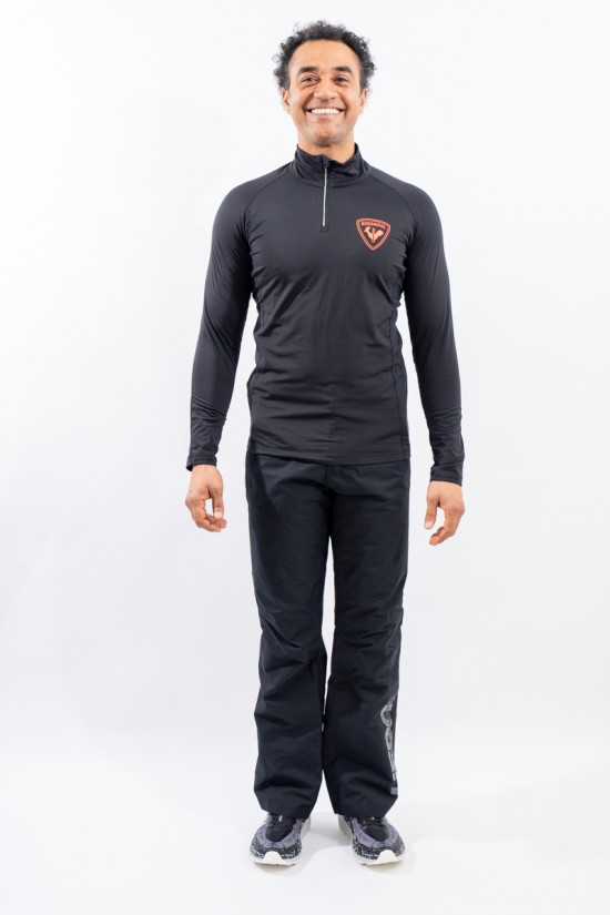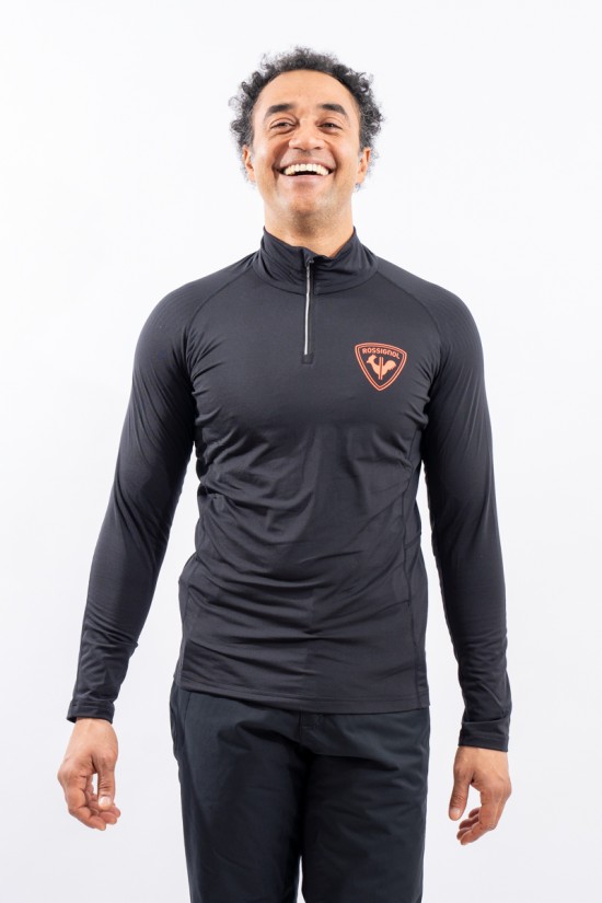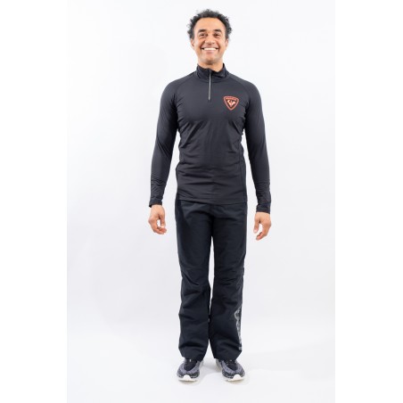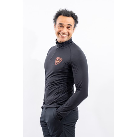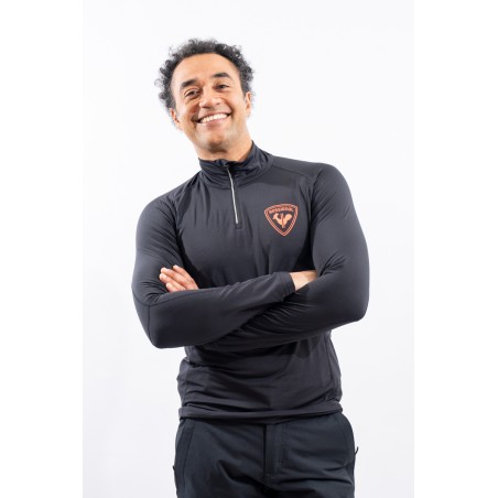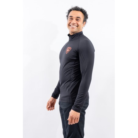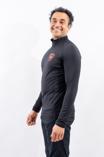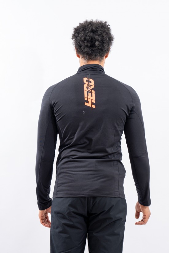 Half-zip undersuit in fleece and breathable stretch fabric. Enriched by the reflective insert on the zip and the contrasting printed HERO lettering on the back. Highly functional and comfortable, it is perfect under the ski jacket and for all kinds of sports.