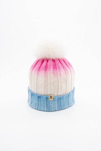 Beanie REGINA made of 100% wool with fur pompoms is a stylish and warm accessory for winter. The soft, thick ribbed knit provides a comfortable feel and a good fit, while the cuff adds a touch of style. Embellished with stripes in different shades of color. The elastic fit makes it suitable for different head shapes, keeping you warm and protecting you from the cold. The fur pompom gives an additional element of refinement and originality. Perfect to complete casual outfits or for more formal occasions!