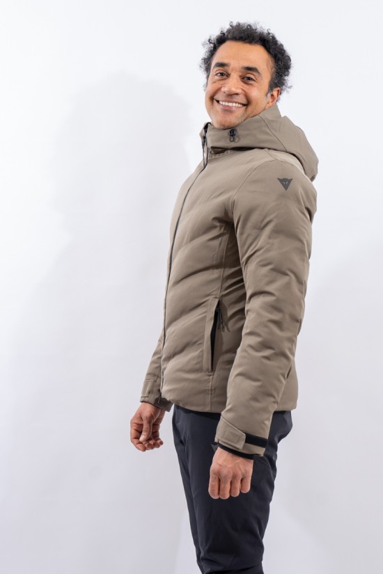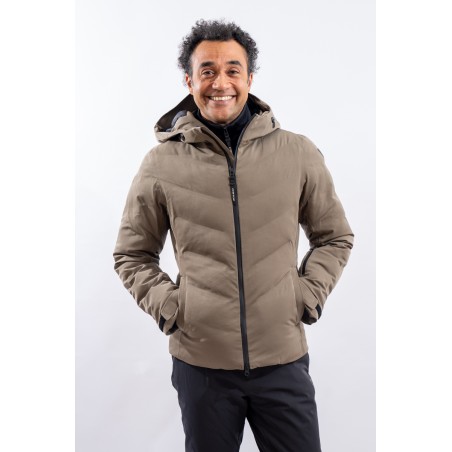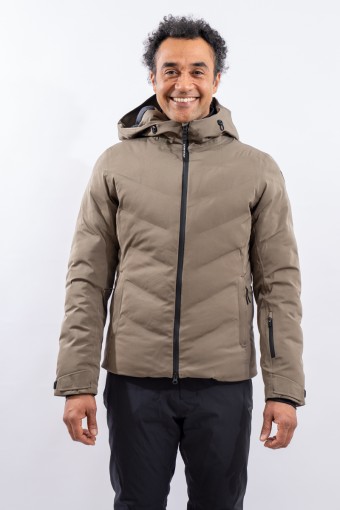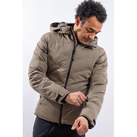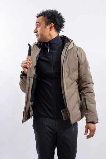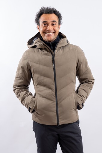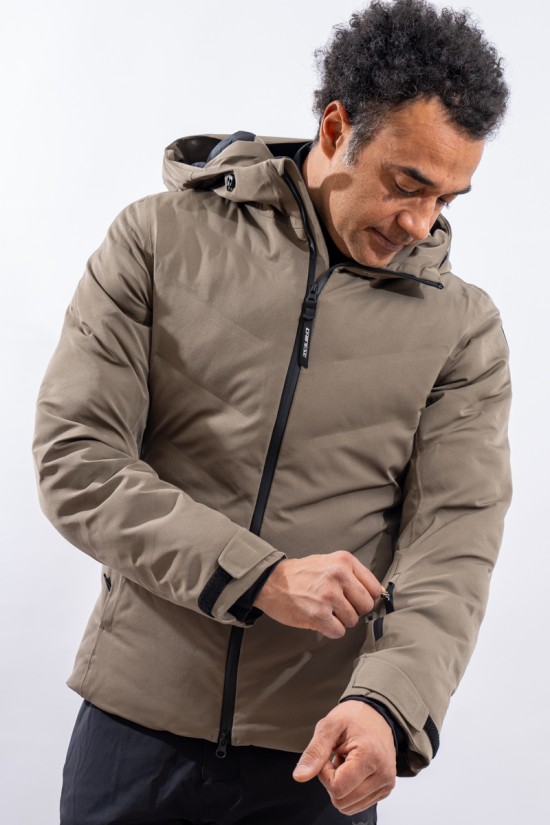 The Etesia ski jacket is made of technical stretch fabric combined with an AEROSENSE-DRY membrane that makes the garment highly waterproof, breathable and comfortable. The seamless sealed boudin workmanship and rubberized zippers are a further guarantee of total protection from the elements. Padded with REPREVE,® a fiber made from recycled plastic, it is warm and insulating. The ergonomic cut ensures a perfect fit for a versatile and high-performance garment, perfect on the snow and ideal in the city thanks to the removable inserts and an essential sporty look.