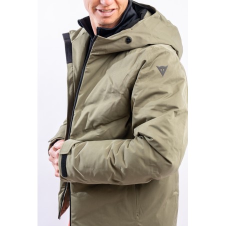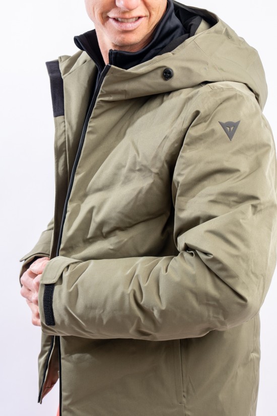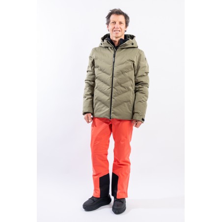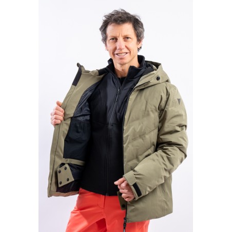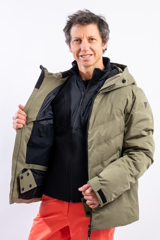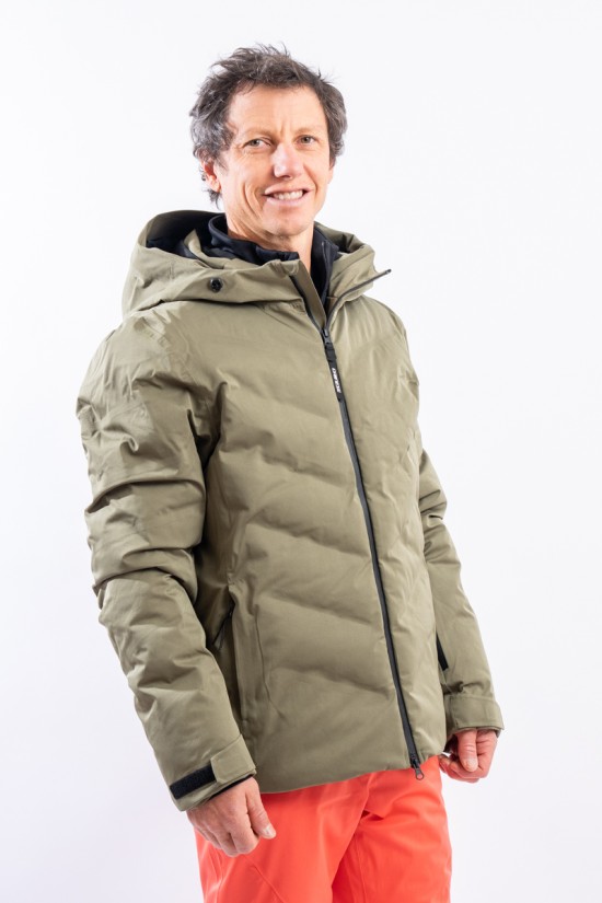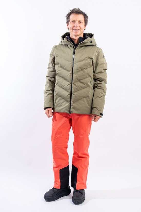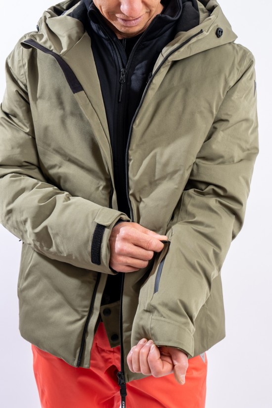 The Etesia ski jacket is made of technical stretch fabric combined with an AEROSENSE-DRY membrane that makes the garment highly waterproof, breathable and comfortable. The seamless sealed boudin workmanship and rubberized zippers are a further guarantee of total protection from the elements. Padded with REPREVE,® a fiber made from recycled plastic, it is warm and insulating. The ergonomic cut ensures a perfect fit for a versatile and high-performance garment, perfect on the snow and ideal in the city thanks to the removable inserts and an essential sporty look.