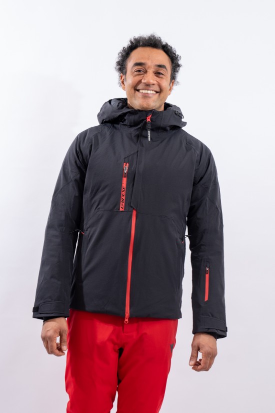 The Etra ski jacket is the high-performance jacket designed by DAINESE for the demanding skier who does not want to compromise. Made of technical stretch fabric combined with an AEROSENSE-DRY membrane, it is highly waterproof, breathable and comfortable. Equipped with an internal pocket designed to accommodate the CORE back protector, for greater safety even on the slopes. Padded with REPREVE,® a fiber made from recycled plastic, it is warm and insulating. Equipped with various pockets, it is practical and functional, while the ergonomic cut makes it perfectly adaptable.