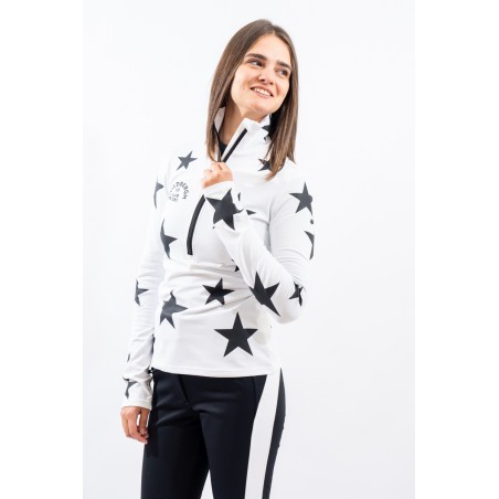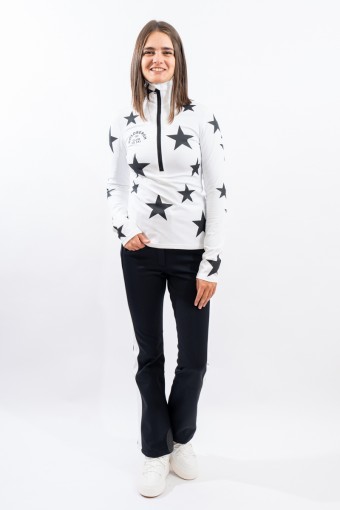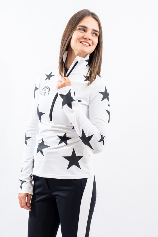 Half-zip undersuit made of micro-fleece stretch fabric with SILVADUR technology with antibacterial and anti-odor action. Characterized by the deep zip and the all-over rubberized print with institutional lettering on the back. Comfortable, warm and breathable. Ideal under the ski jacket or for any outdoor activity.