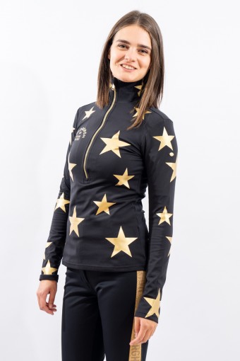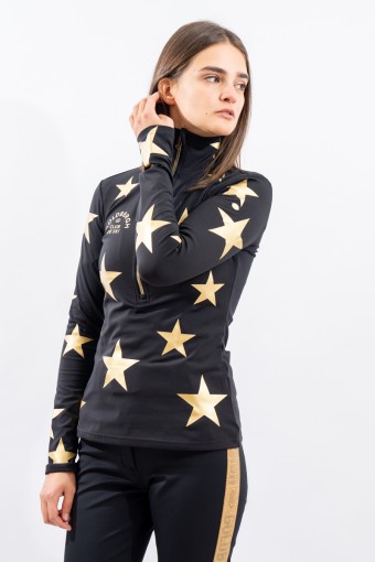 Half-zip undersuit made of micro-fleece stretch fabric with SILVADUR technology with antibacterial and anti-odor action. Characterized by the deep zip and the all-over rubberized print with institutional lettering on the back. Comfortable, warm and breathable. Ideal under the ski jacket or for any outdoor activity.