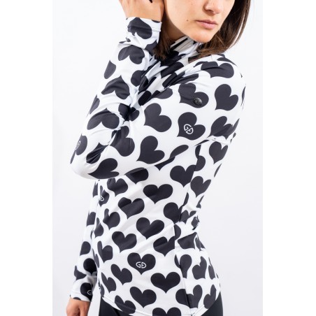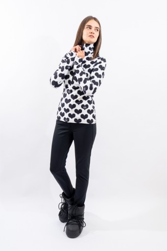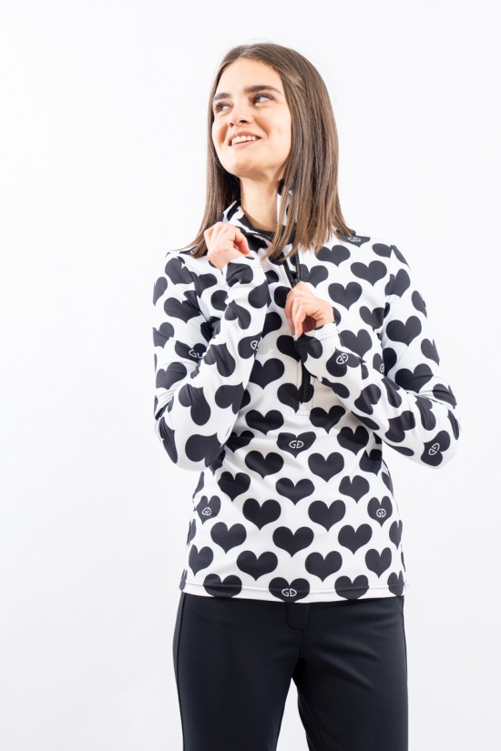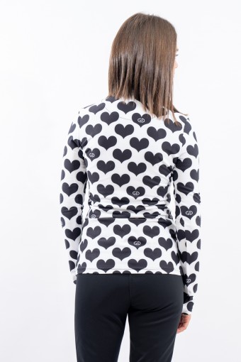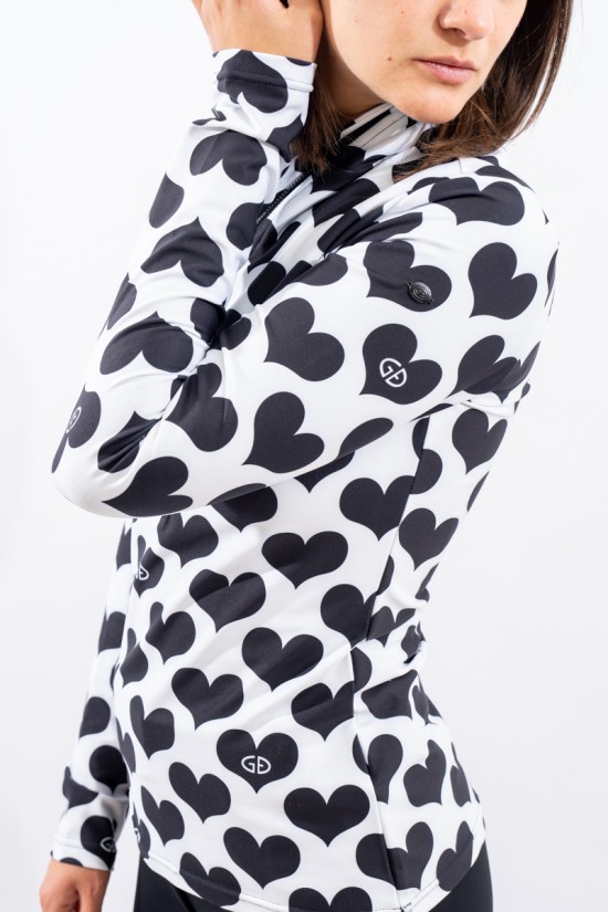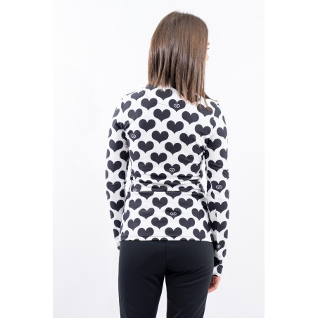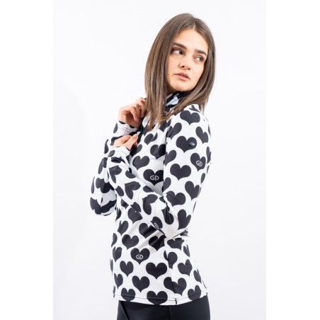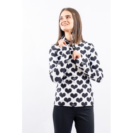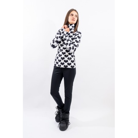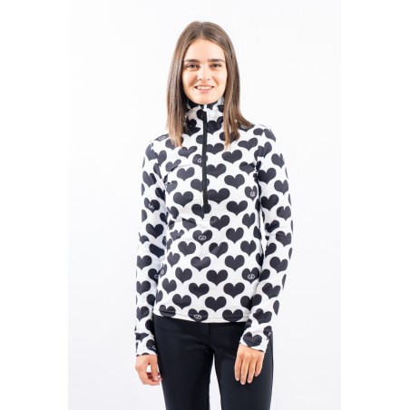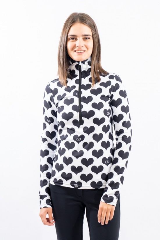 Half-zip undersuit made of microfleece stretch fabric with SILVADUR technology, with antibacterial and anti-odor action. Comfortable, warm and breathable. Characterized by the deep zip and the contrasting print with an all-over heart motif. Ideal under the ski jacket and for any outdoor activity.