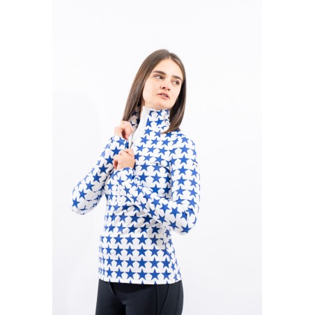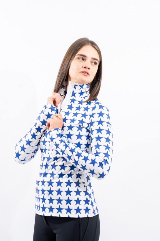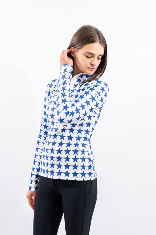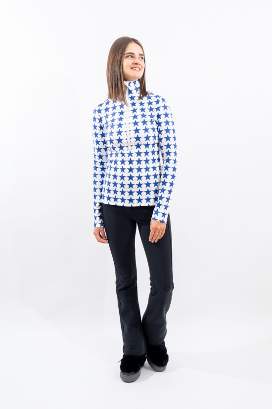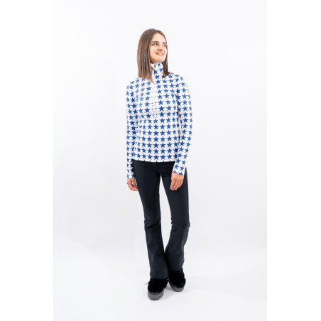Half-zip undersuit made of microfleece stretch fabric with SILVADUR technology, with antibacterial and anti-odor action. Characterized by the all-over contrasting star rubberized print and the personalized zip puller. Comfortable, warm and breathable, it is ideal under the ski jacket and for practicing any outdoor activity.