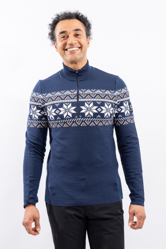 Half-zip undersuit in DH-Tech 400 high performance fabric, for a highly insulating and breathable garment. Product made with an extruded polyurethane-based yarn characterized by a hollow thread internally. Quick-drying, it is anti-odor and antibacterial. This unprecedented solution, strictly Made in Italy, makes the product compact and elastic for unparalleled comfort and fit.