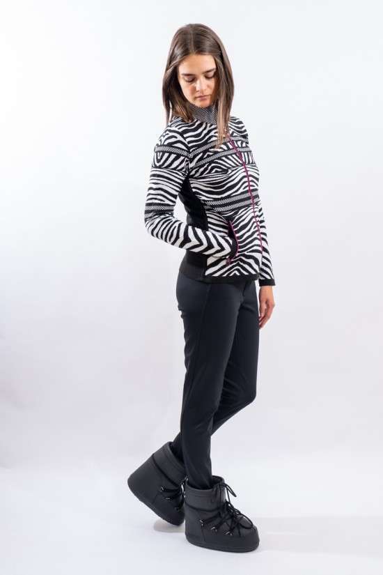 Full zip undersuit in DH-Tech 400 high performance fabric, for a highly insulating and breathable garment. Product made with an extruded polyurethane-based yarn characterized by a hollow thread internally. Quick-drying, it is anti-odor and antibacterial. This unprecedented solution, strictly Made in Italy, makes the product compact and elastic for unparalleled comfort and fit.