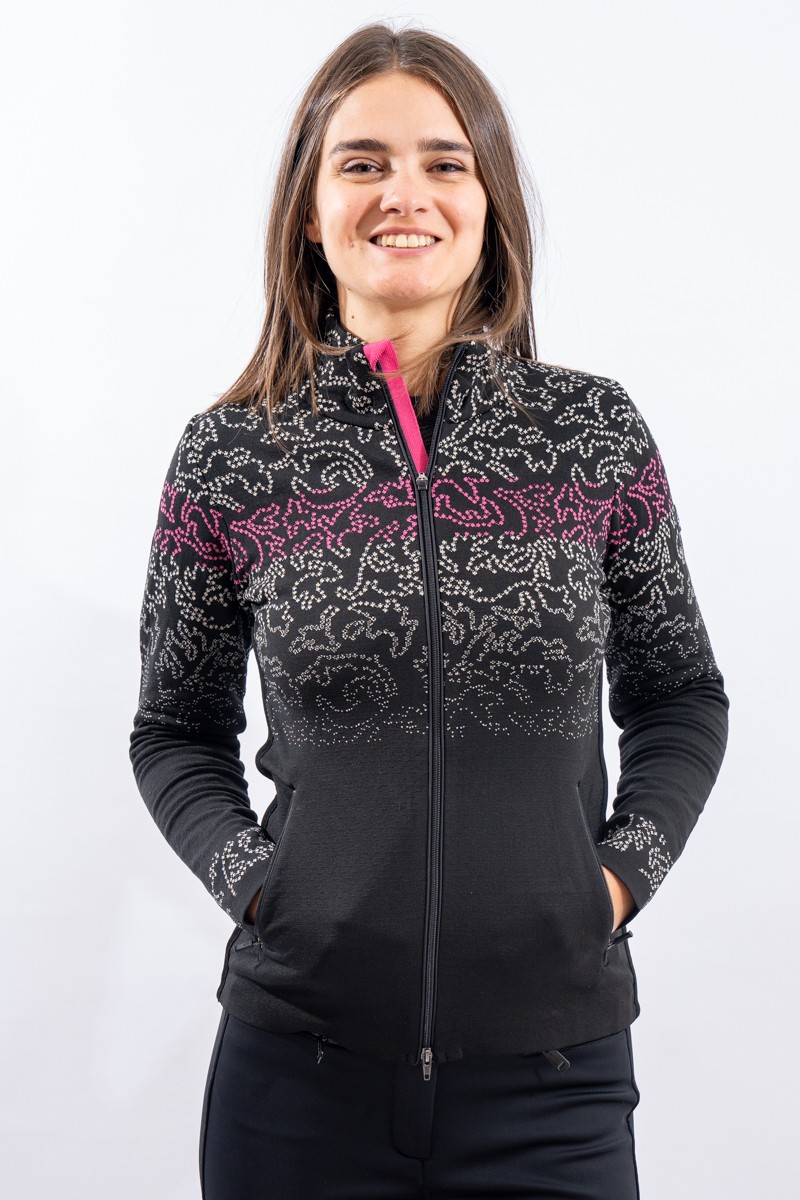 Full zip undersuit in DH-Tech 400 high performance fabric, for a highly insulating and breathable garment. Product made with an extruded polyurethane-based yarn characterized by a hollow thread internally. Quick-drying, it is anti-odor and antibacterial. This unprecedented solution, strictly Made in Italy, makes the product compact and elastic for unparalleled comfort and fit.