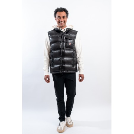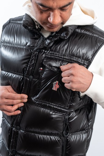 Vest made of ripstop nylon, resistant and durable completed by a water-repellent finish. Perfect for any outdoor activity, Nantu is padded with fine 90/10 down, which makes the garment warm and extremely light. Finished with a bellows pocket on the chest, branded buttons and the MONCLER Grenoble logo sewn on the chest.