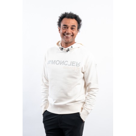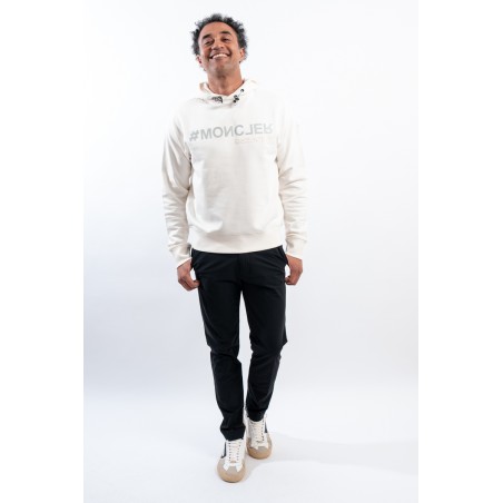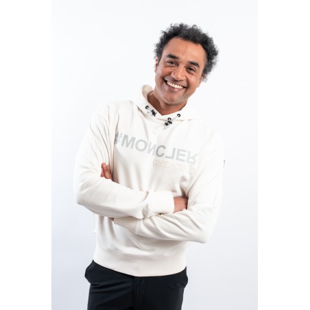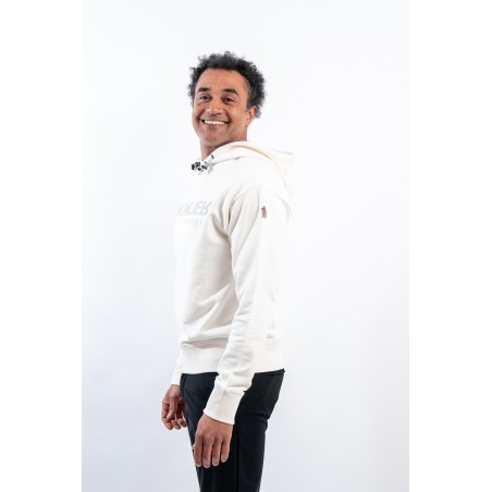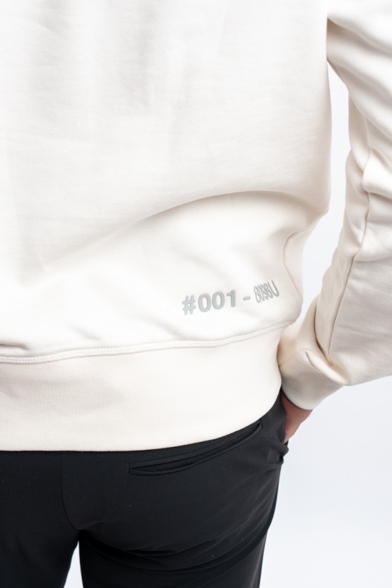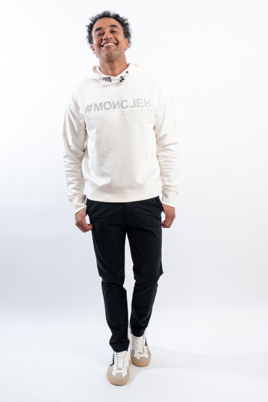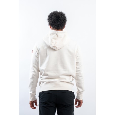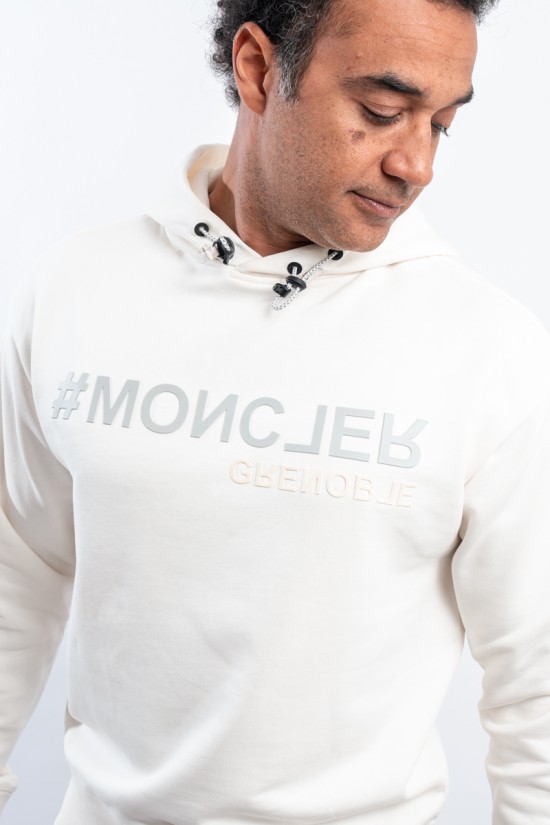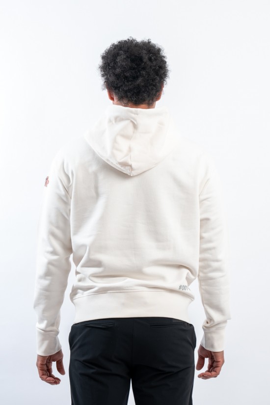 Hoodie made of soft cotton jersey. Enriched by the rubberized lettering applied on the chest and the institutional logo sewn on the sleeve. Finished with ribbed cuffs and hem, it is comfortable and practical.