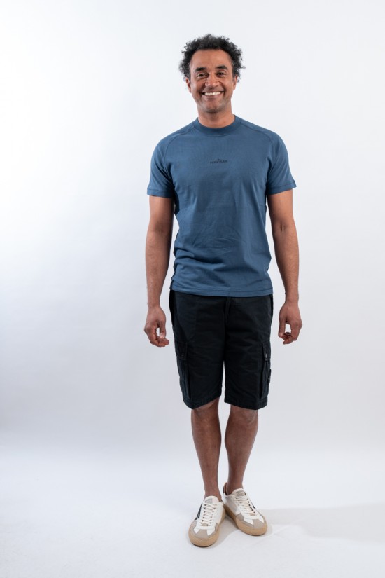 Short-sleeved T-shirt made of organic cotton jersey and garment-dyed. The streamlined design is enhanced by two-thread overlock stitching. Featuring the maxi "Institutional One" logo printed on the back and the STONE ISLAND lettering print printed on the chest.