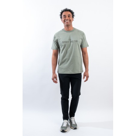 Short-sleeved T-shirt made of organic cotton jersey and garment-dyed. The streamlined design is enhanced by two-thread overlock stitching. Featuring a slightly reflective 'Institutional Two' logo print on the front and a small lettering print STONE ISLAND the back.