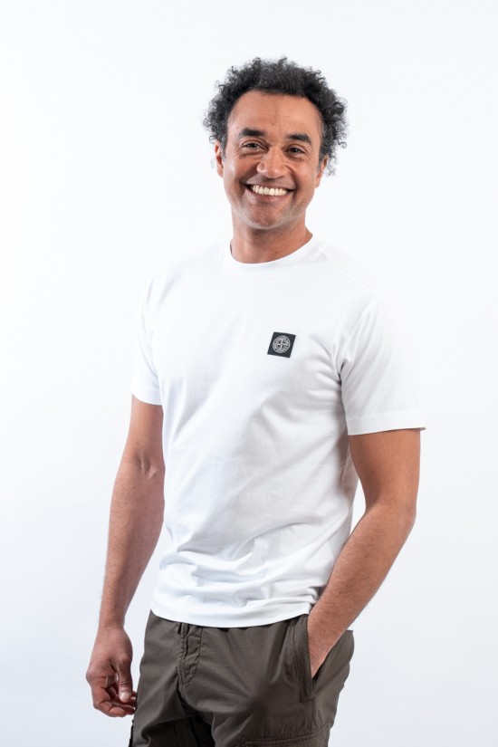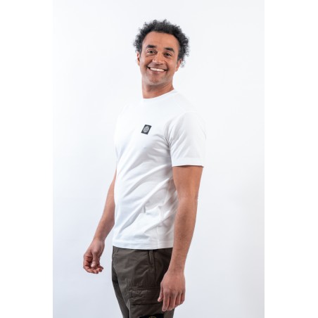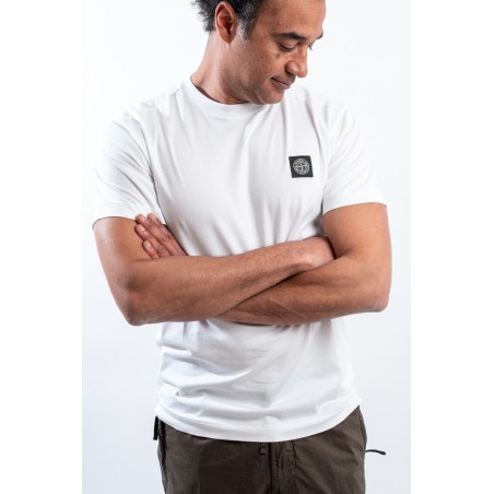 T-shirt made of cotton jersey and garment dyed by STONE ISLAND. Essential design enriched by ribbed ends and embellished with three-dimensional stitching. The look is completed by the application of the iconic Compass STONE ISLAND badge on the chest.
