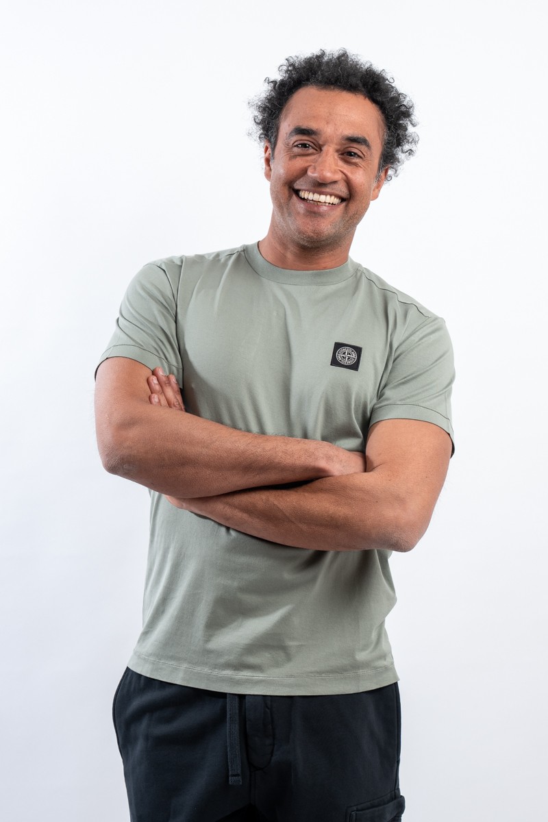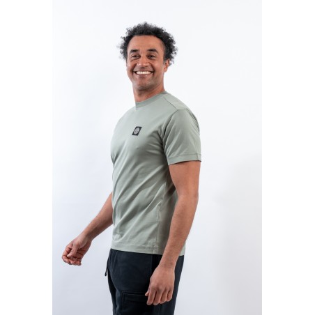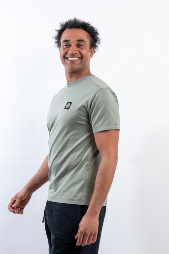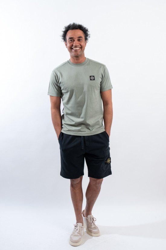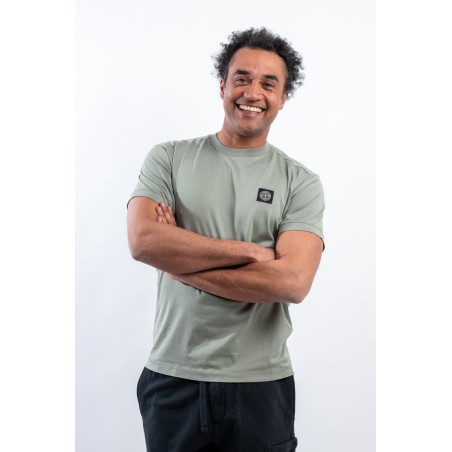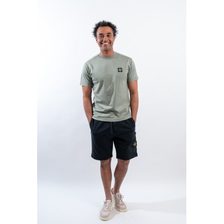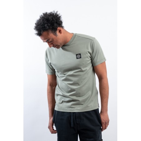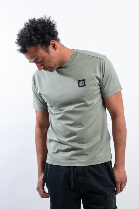 T-shirt made of cotton jersey and garment dyed by STONE ISLAND. Essential design enriched by ribbed ends and embellished with three-dimensional stitching. The look is completed by the application of the iconic Compass STONE ISLAND badge on the chest.
