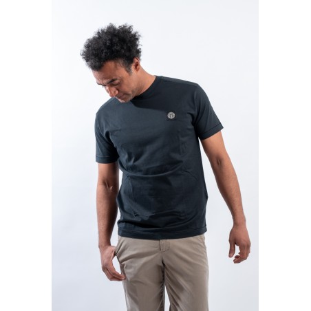 T-shirt made of cotton jersey and garment dyed by STONE ISLAND. Essential design enriched by ribbed ends and embellished with three-dimensional stitching. The look is completed by the application of the iconic Compass STONE ISLAND badge on the chest.