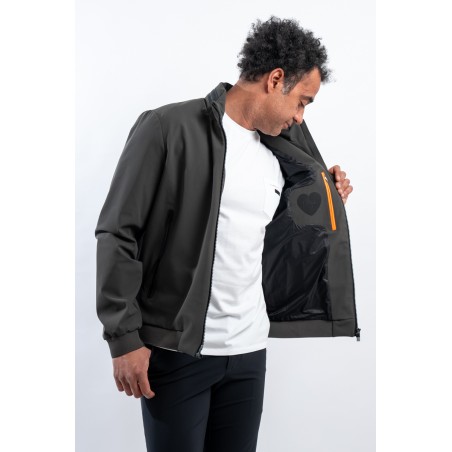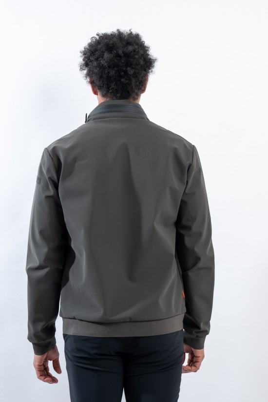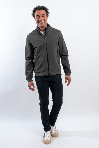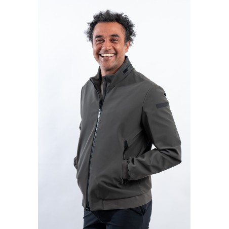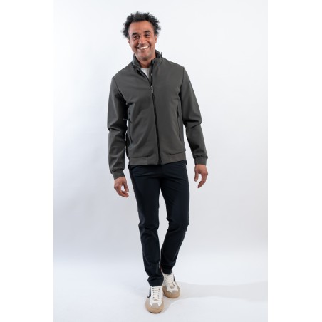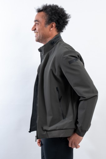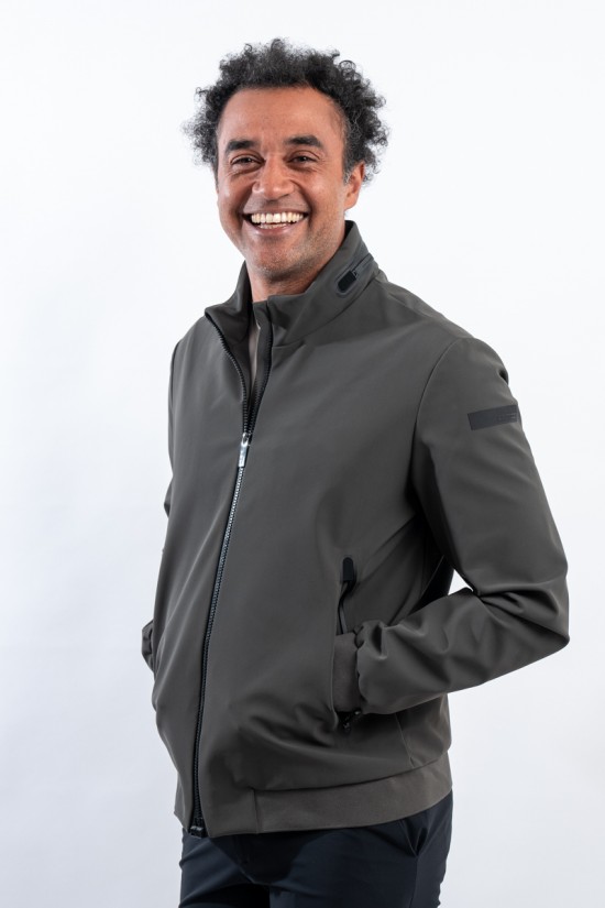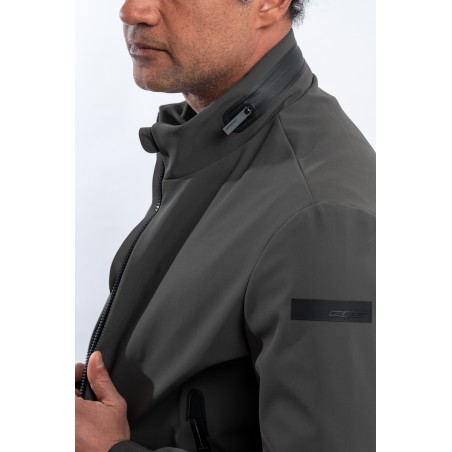 Compact and functional jacket enriched by the use of innovative and high-performance materials. Made of the exclusive SURFLEX,® a stretchy, lightweight technical fabric with a super-matte look, soft and versatile. Thanks to this innovative fabric, the garment is easy care, no iron and superstretch. The heat-taped and the full zip with magnetic closure redefine a design with an essential look, giving the garment a decisive and recognizable character. It is not caught unprepared for sudden climatic changes thanks to the hood folded inside the collar. Contemporary and timeless look, ideal in mid-seasons.
