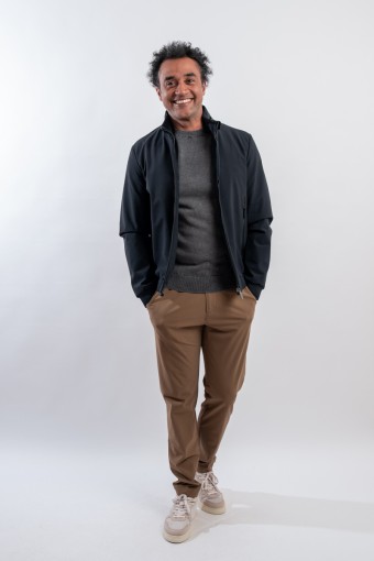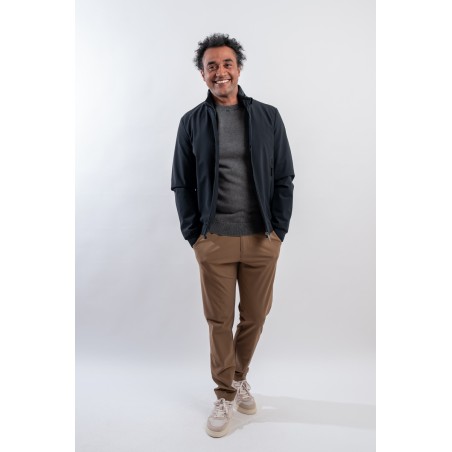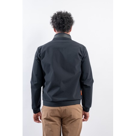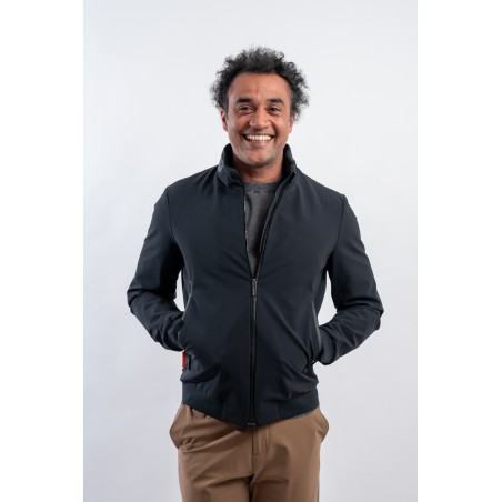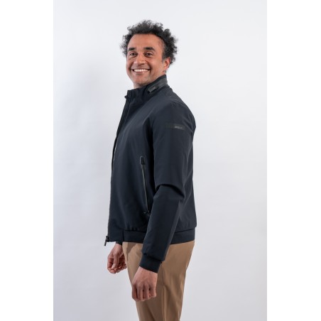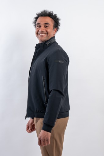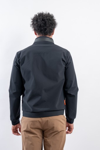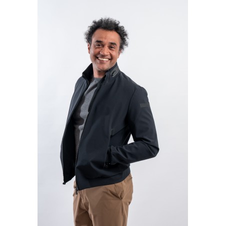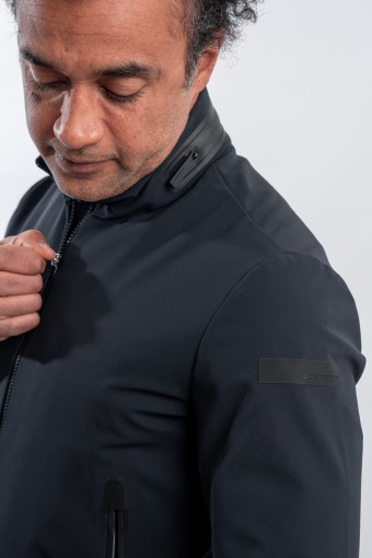 Compact and functional jacket enriched by the use of innovative and high-performance materials. Made of the exclusive SURFLEX,® a stretchy, lightweight technical fabric with a super-matte look, soft and versatile. Thanks to this innovative fabric, the garment is easy care, no iron and superstretch. The heat-taped and the full zip with magnetic closure redefine a design with an essential look, giving the garment a decisive and recognizable character. It is not caught unprepared for sudden climatic changes thanks to the hood folded inside the collar. Contemporary and timeless look, ideal in mid-seasons.