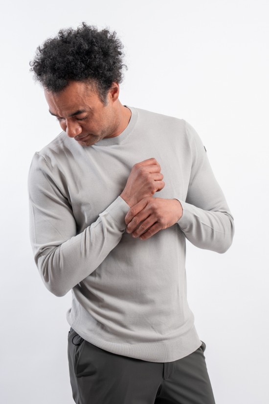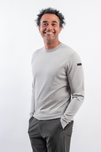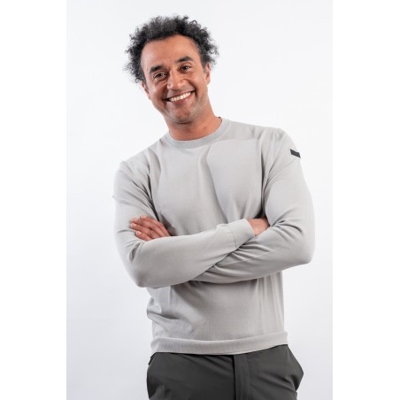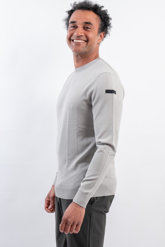 Crewneck sweater made of fine monochromatic stretch yarn. Essential and minimalist design enriched by ribbed finishes on the neckline, cuffs and hem. Contemporary elegance summed up in a basic garment with a refined taste, enhanced by the iconic details of RRD. Perfect complement to wear on various occasions of everyday life.