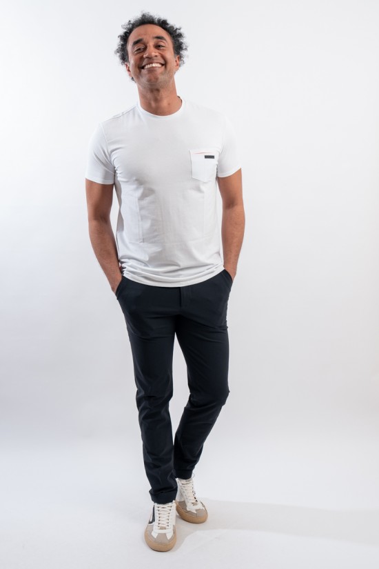 A must-have classic in the men's summer wardrobe. The Chino trousers are made of the exclusive Superflex® stretch fabric, light and fresh, comfortable and highly breathable. Waist with belt loops and hidden double button, for a perfect fit. The typical super matte look of the fabric combined with the tailored cut, create a unique, versatile and contemporary trouser perfect for completing any casual look with a touch of refined elegance.