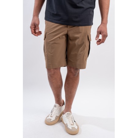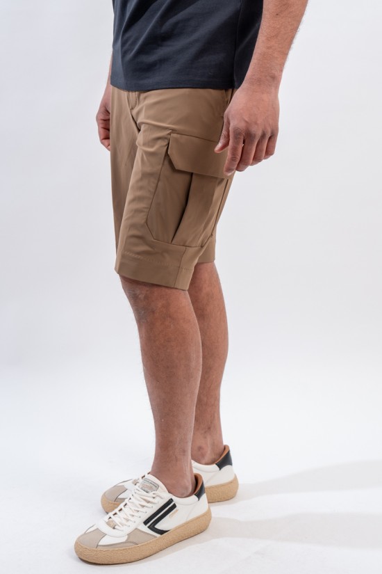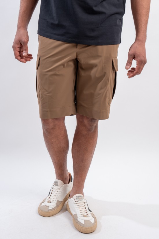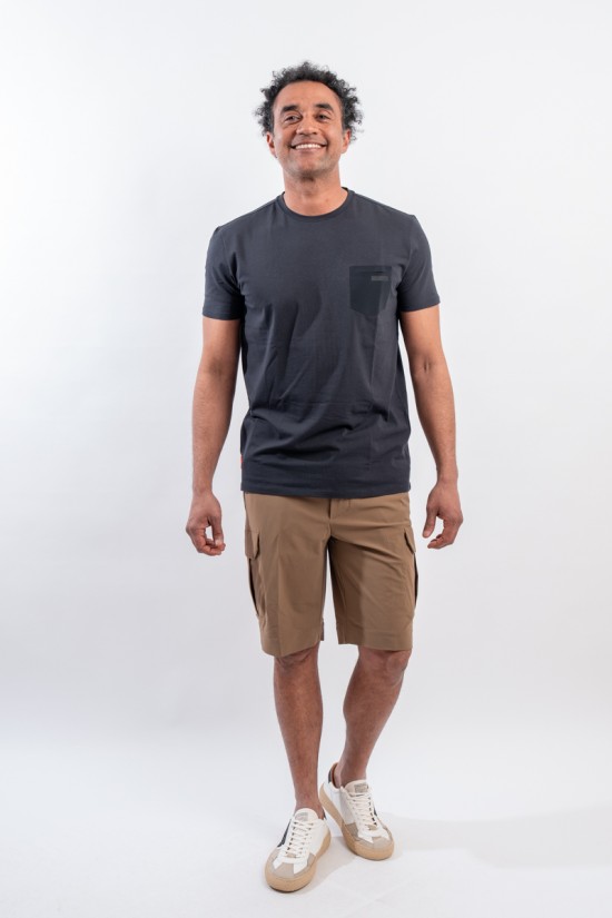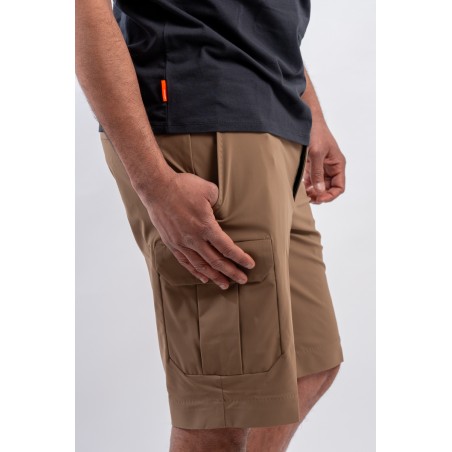 Cargo Bermuda shorts inspired by the military model but renewed in fabrics and design to make it more contemporary and elegant. Made of the exclusive SURFLEX® stretch fabric, it is light, cool, and extremely comfortable. Distinguished by the super matte effect of the fabric and the two bellows pockets applied on the thighs. The look is completed by the French pockets and the two rear welt pockets. Ideal from morning to evening, Cargo Short Pant is the must-have garment for the most dynamic and unpredictable season of the year.