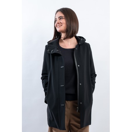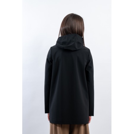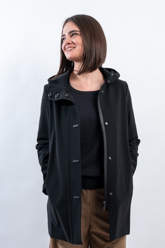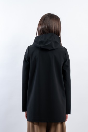 - Fixed hood and high collar